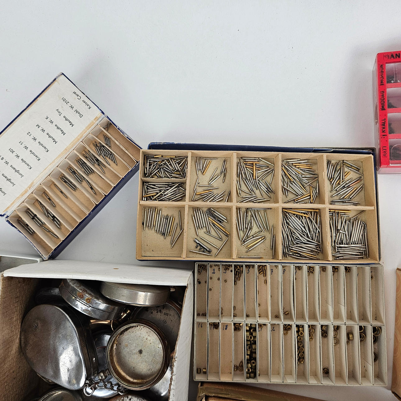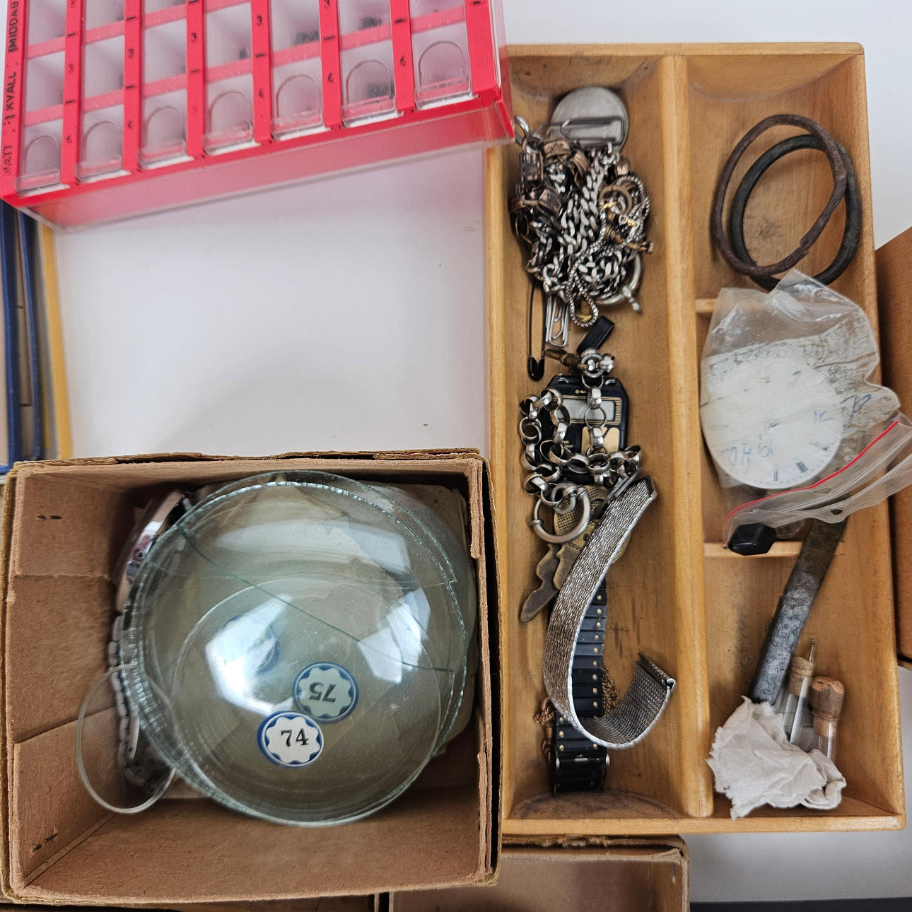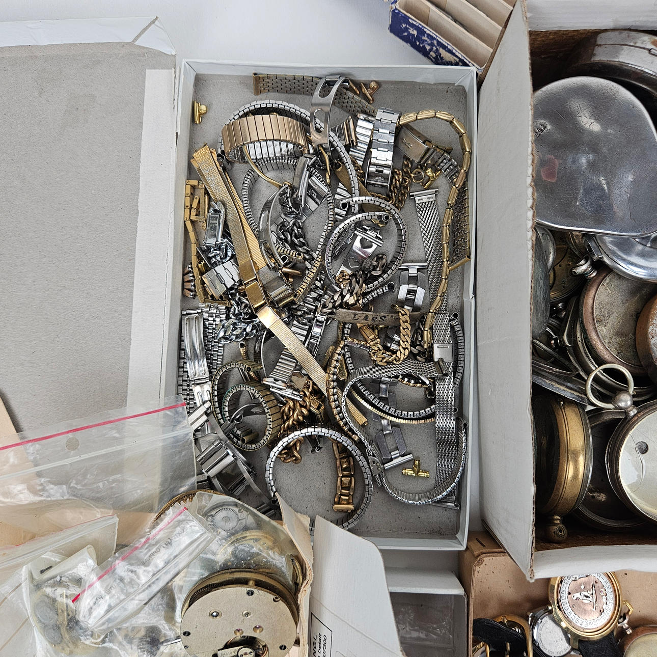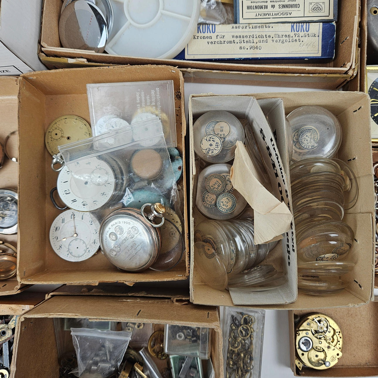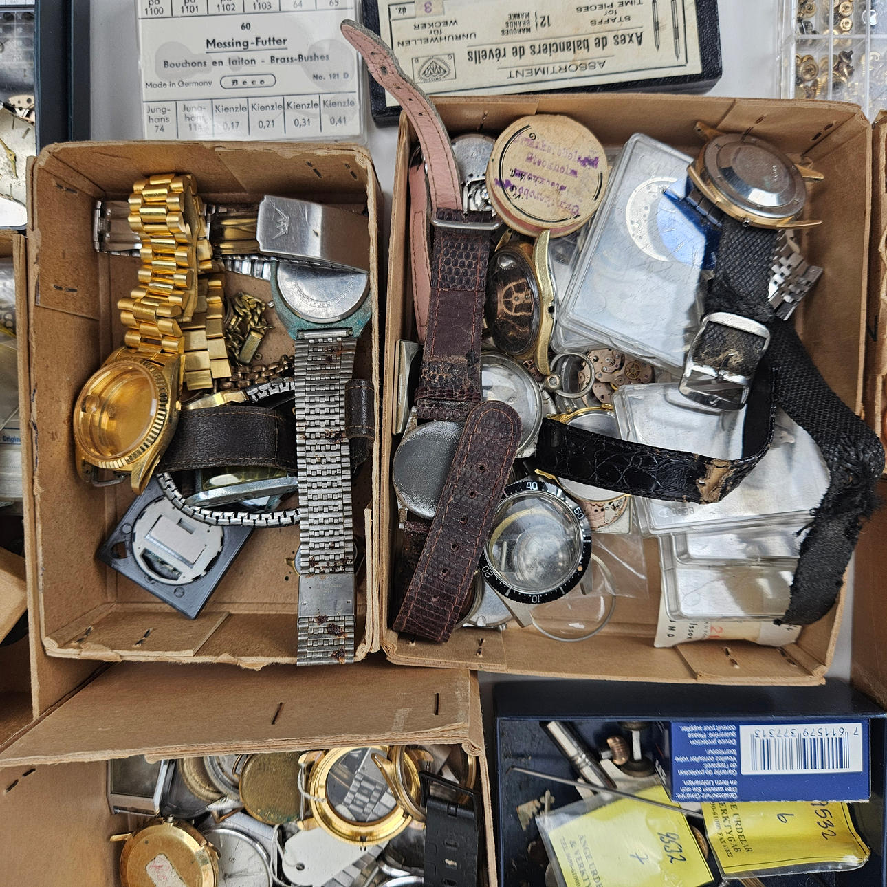 These include glasses, travel watches, cases, hands, watches, dials, sprints, bracelets.