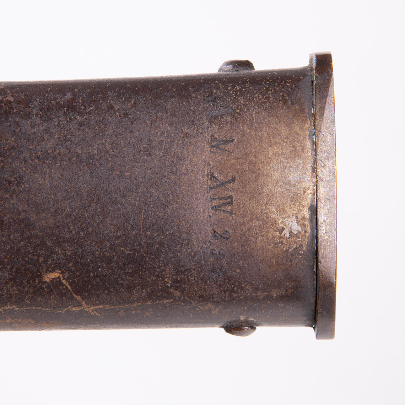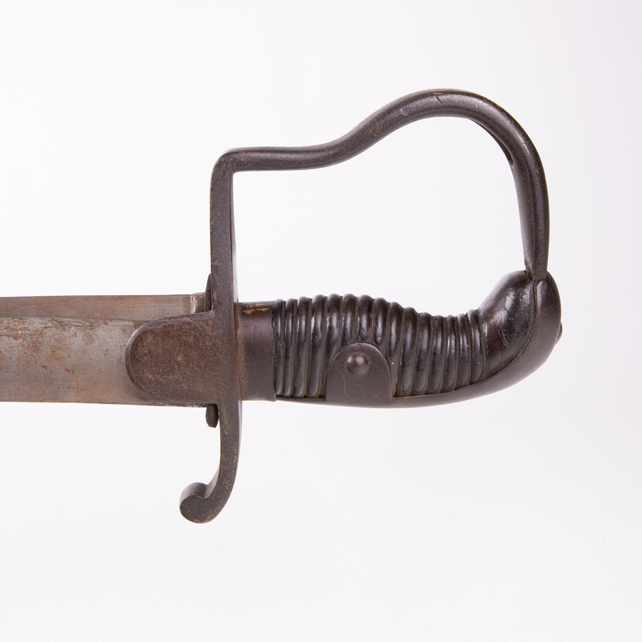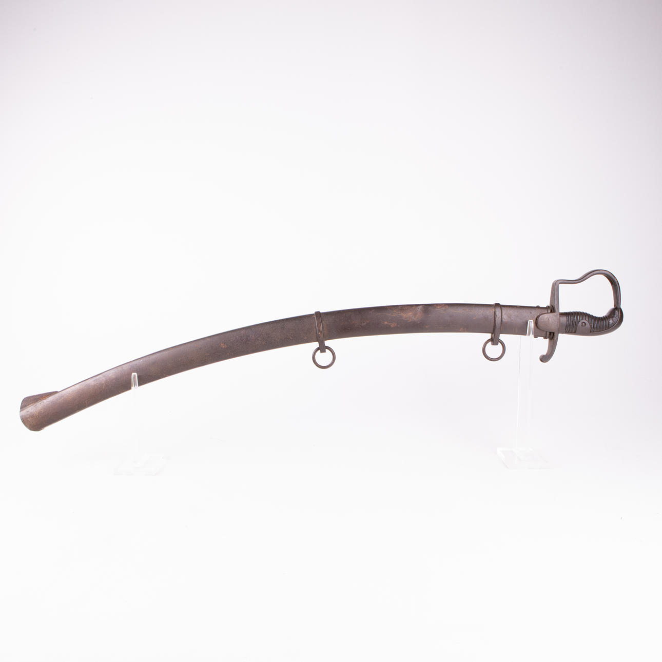 Iron mount with rolling pin in black leather. Prussian regimental markings on pod and mount. Length saber 94cm.