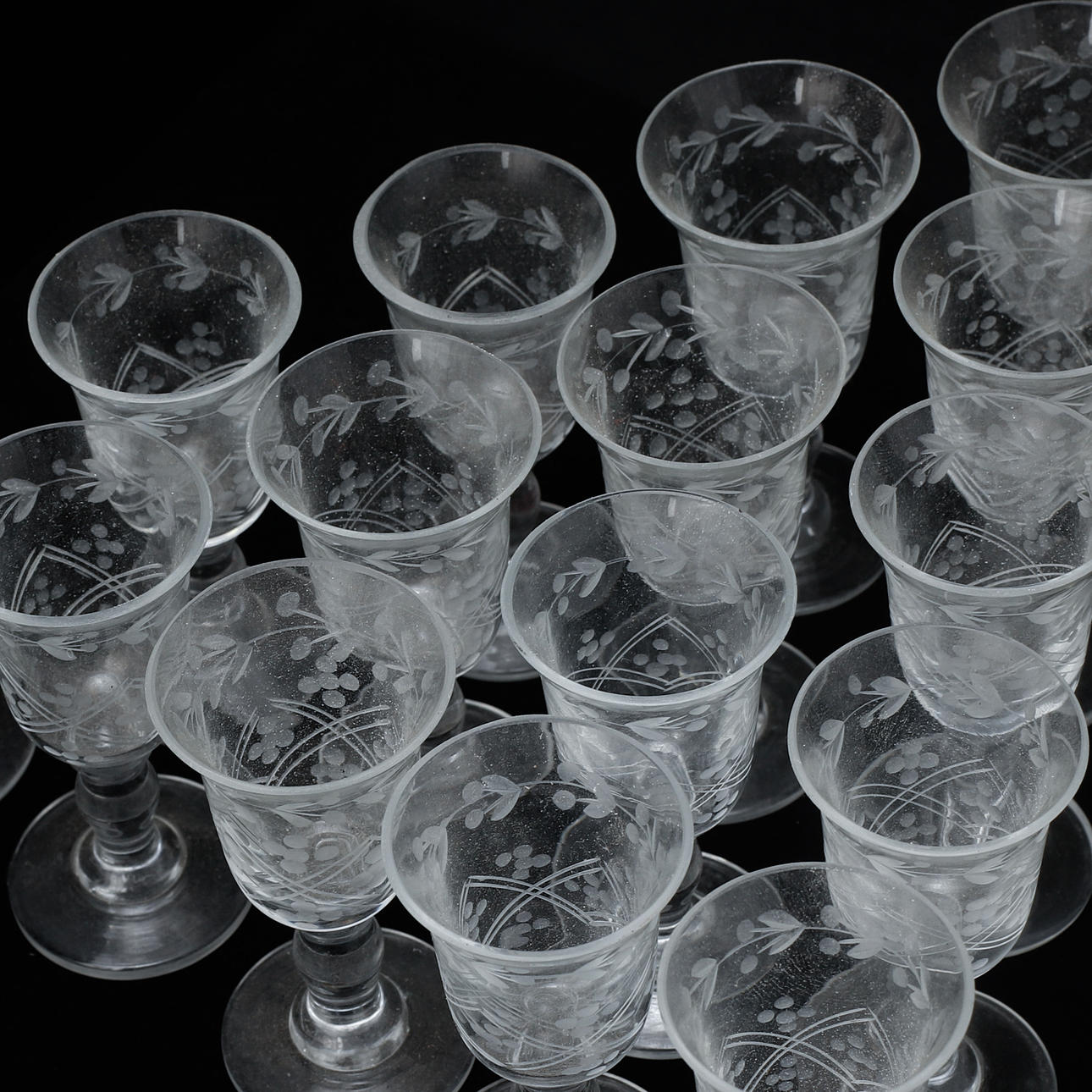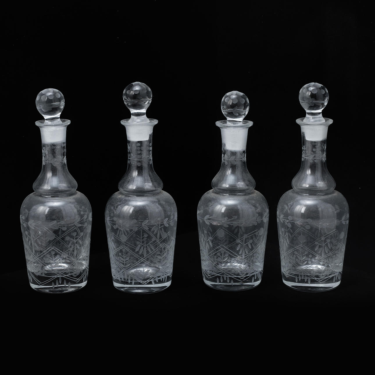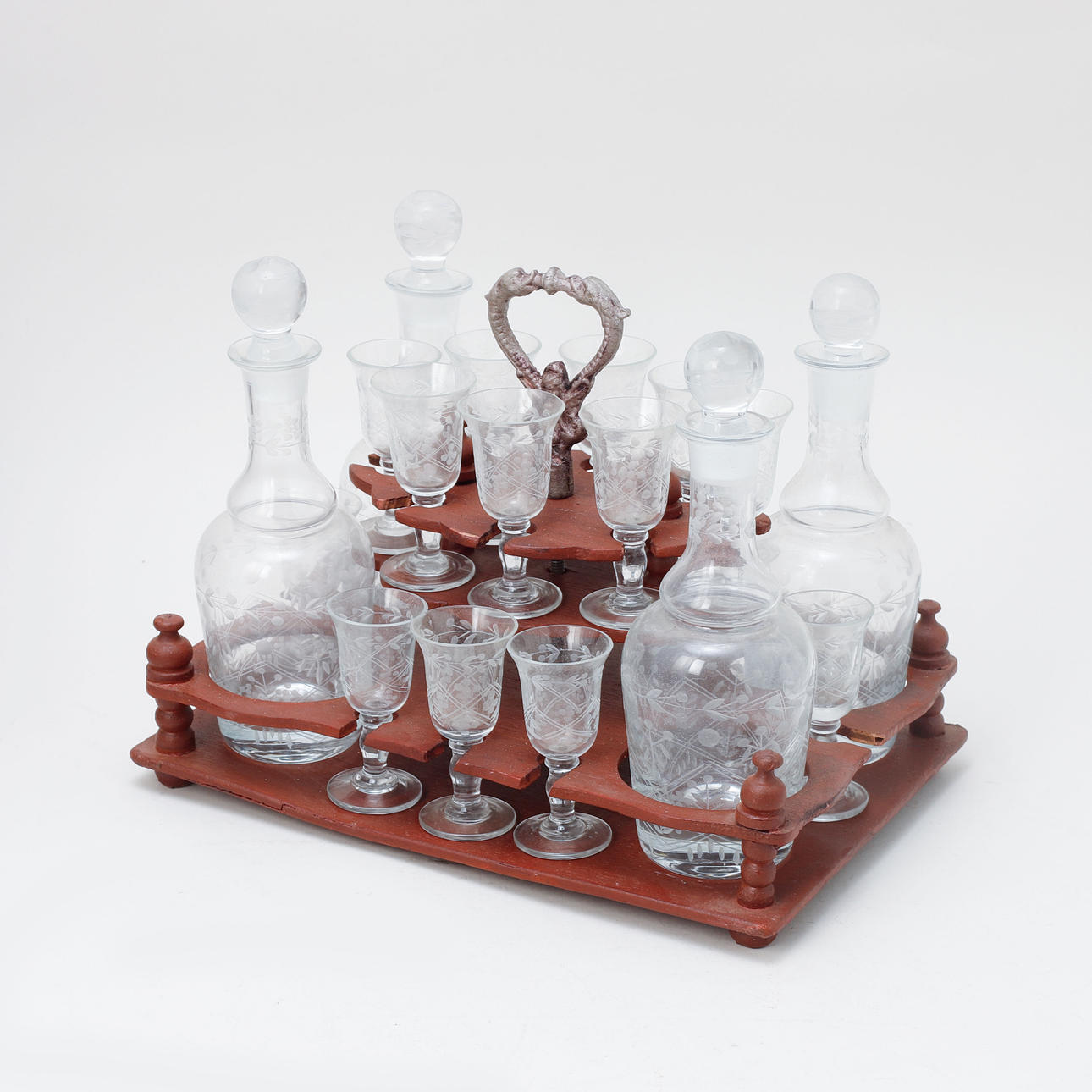 Renovated and completed, including later painting. Minor injuries. Minor chips. A glass with a crack. A decanter with a stopper that stuck.