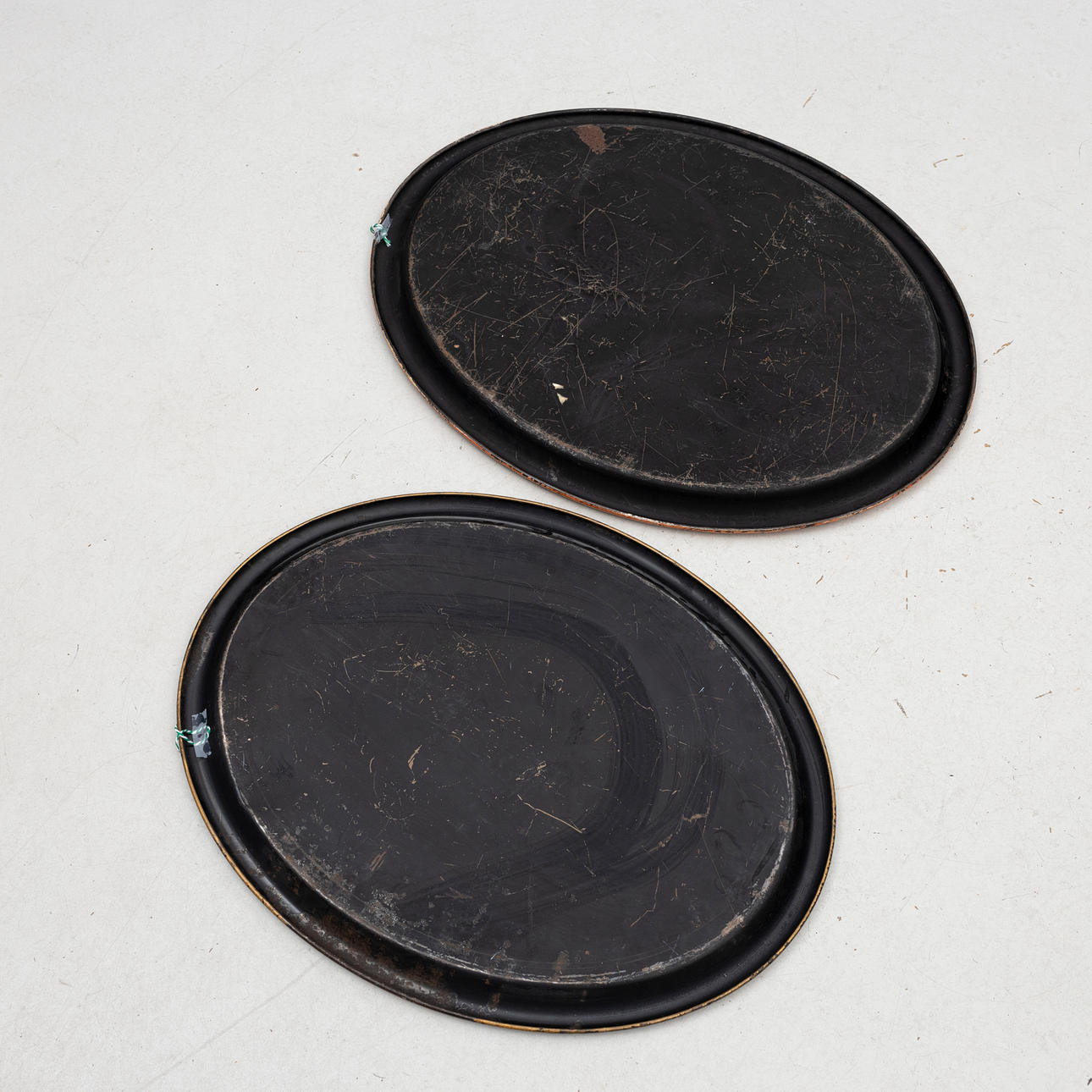 Oval with kinesizing decor, one with red background one with black. 640 x 50 cm and 70 x 57 cm.