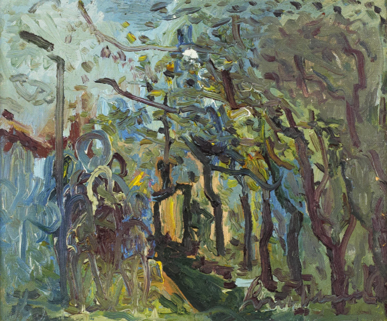4924873. LARS HERDER. Oil on canvas, trees and figures, signed.