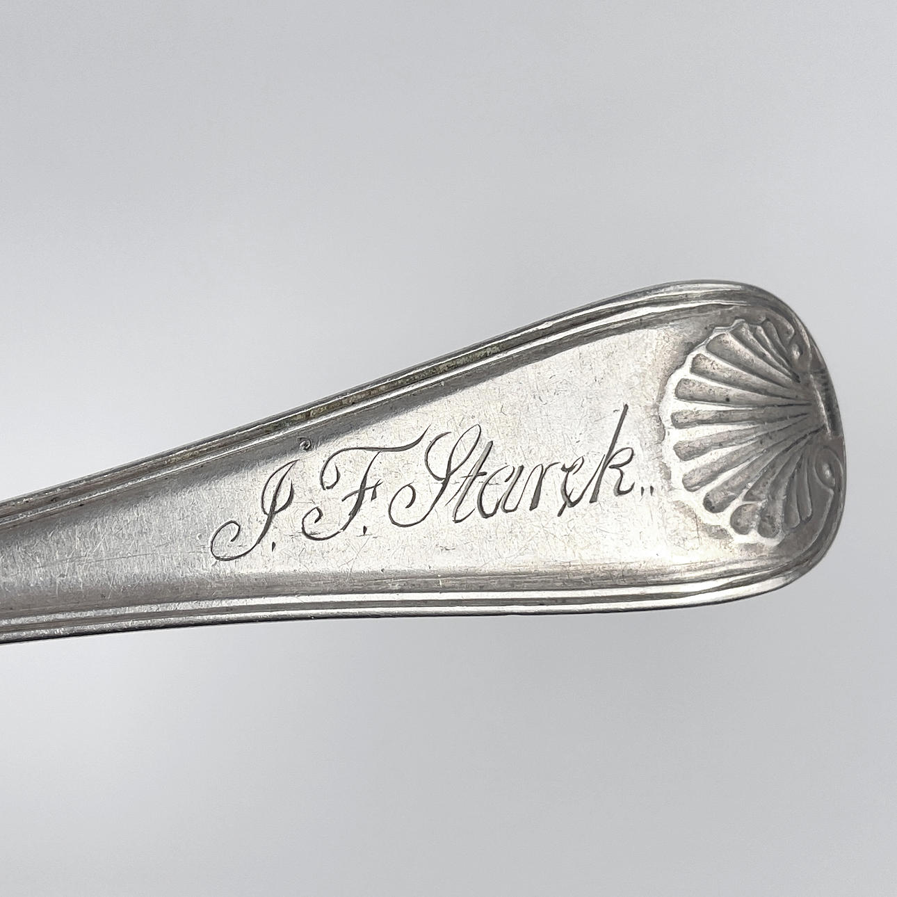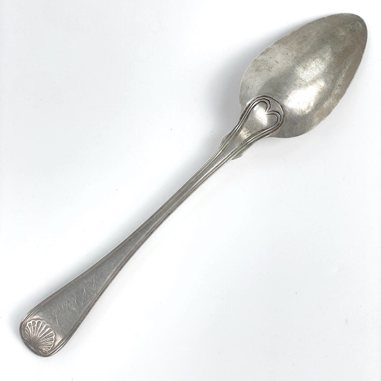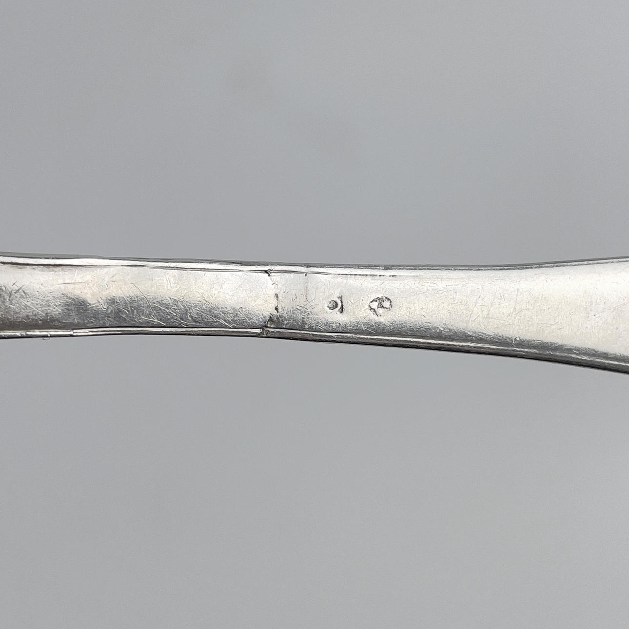 Usage and age-related wear. Engravings. The spoon with indistinct stamps has a patch on the shank.