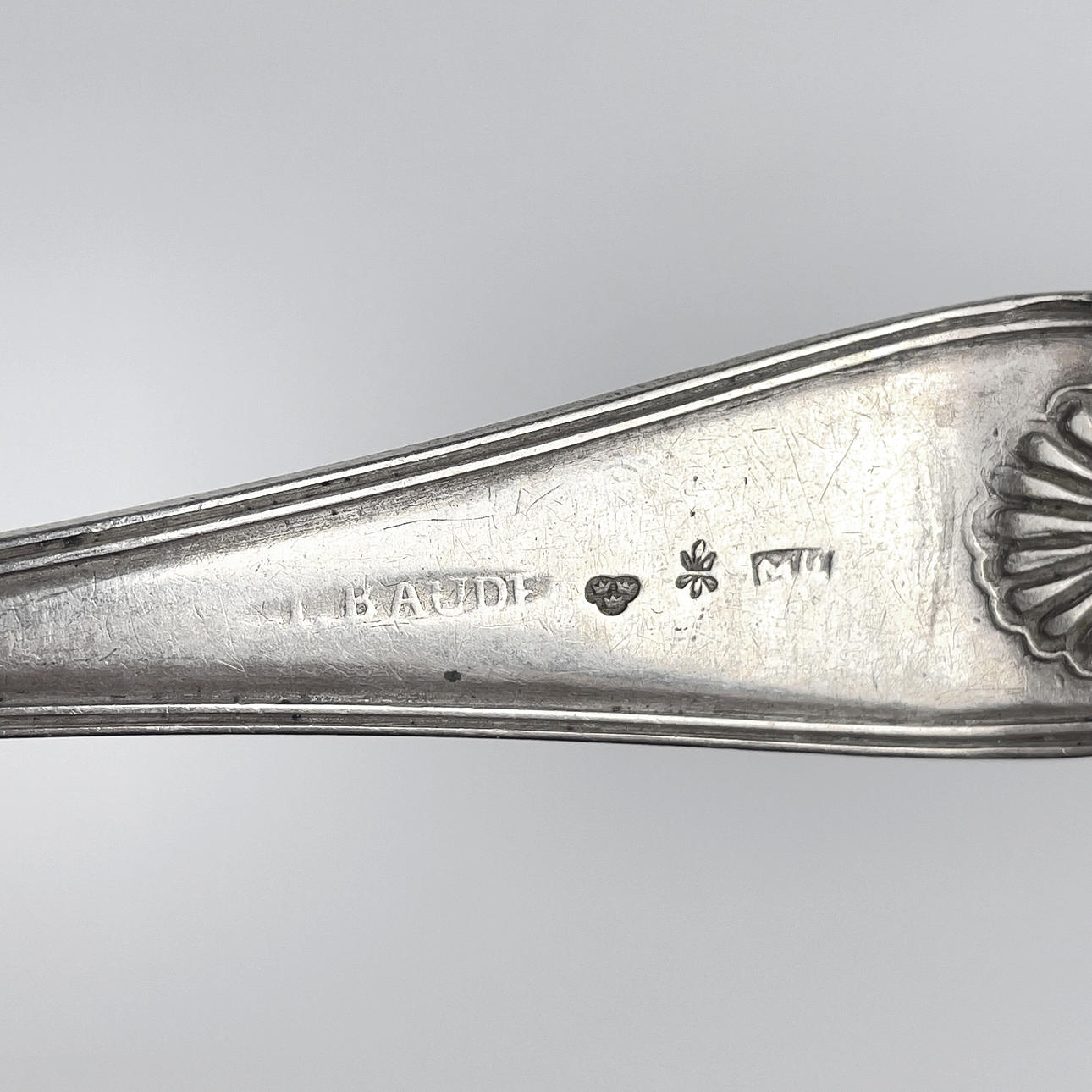 4925047. Two silver spoons by Claes Thomas Baude, Enköping, 1842.