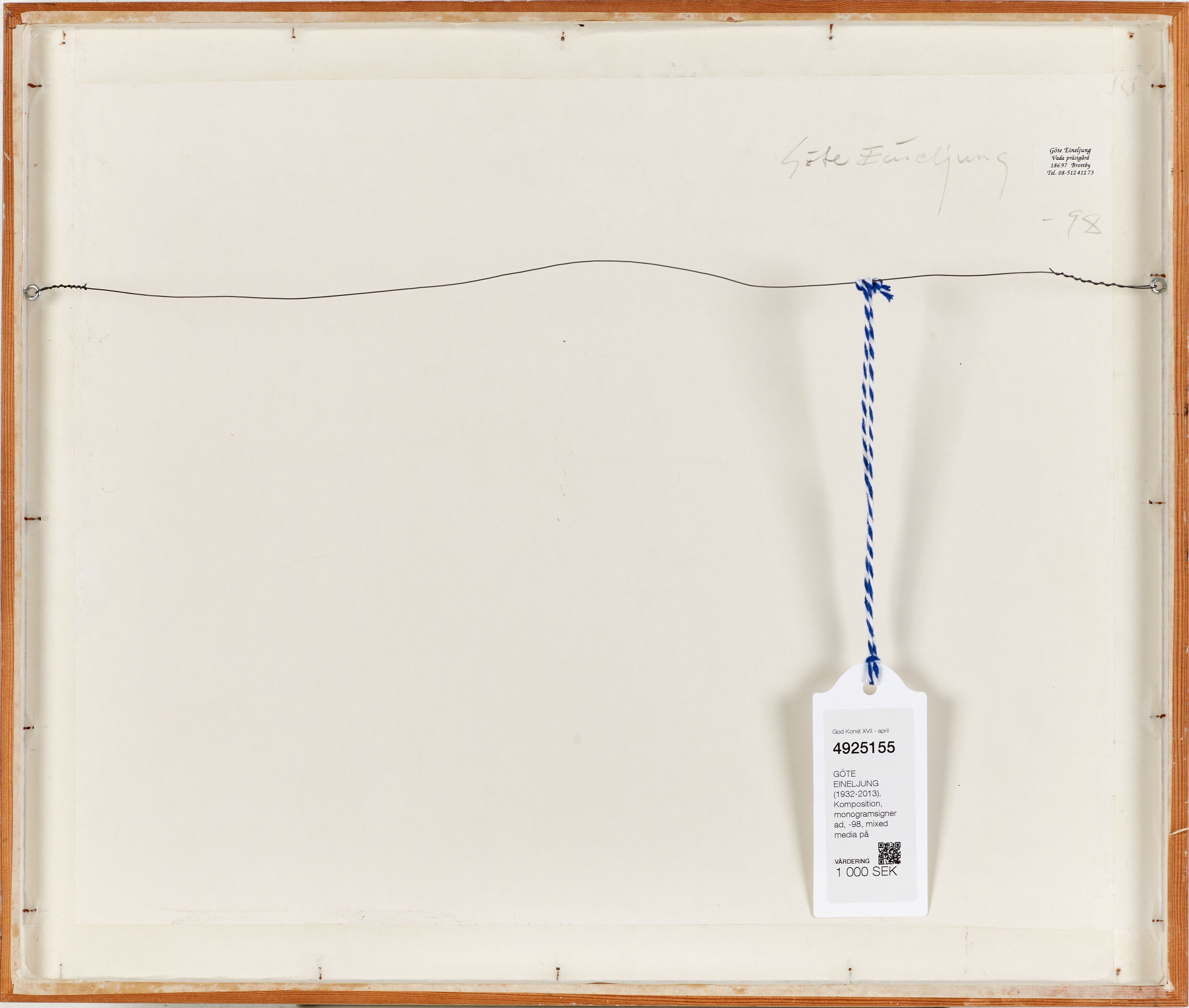 4925155. GÖTE EINELJUNG (1932-2013). Composition, monogram signed, -98, mixed media on paper.