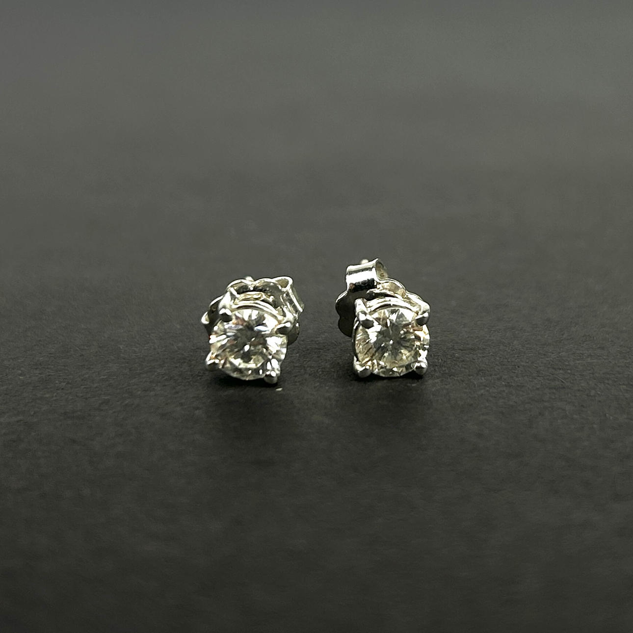 A pair of 18ct white gold earrings each set with a solitaire diamond approx 0.5 ct assessed SI1.