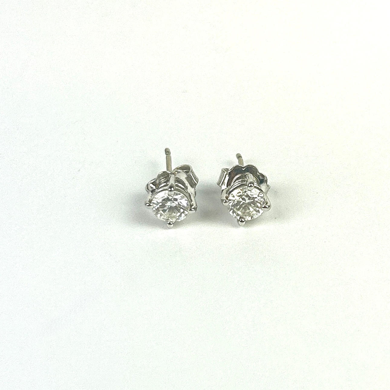 18CT WHITE GOLD 1CT DIAMOND STUD EARRINGS.
