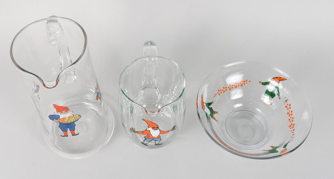 GLASS OBJECTS with Santa decor.