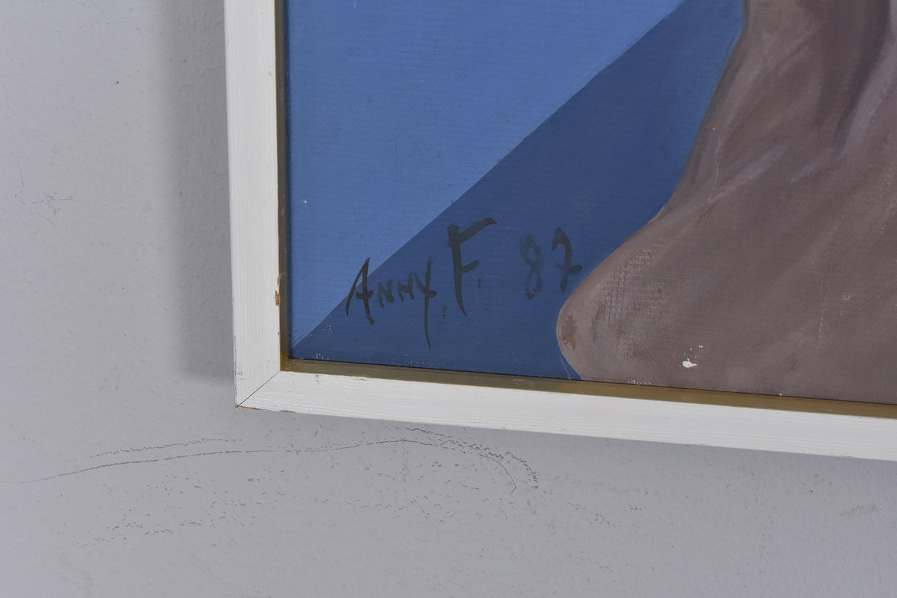 Surreal landscape with women. Signed Anny F. Dated -82. 68x73 cm