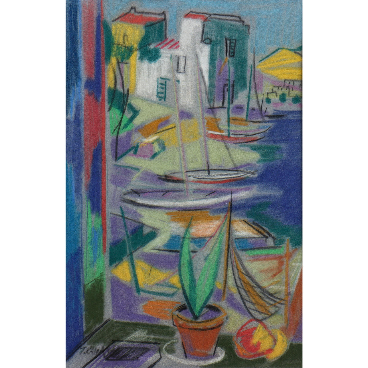 UNIDENTIFIED ARTIST, PASTEL, GLAZED, SIGNED.