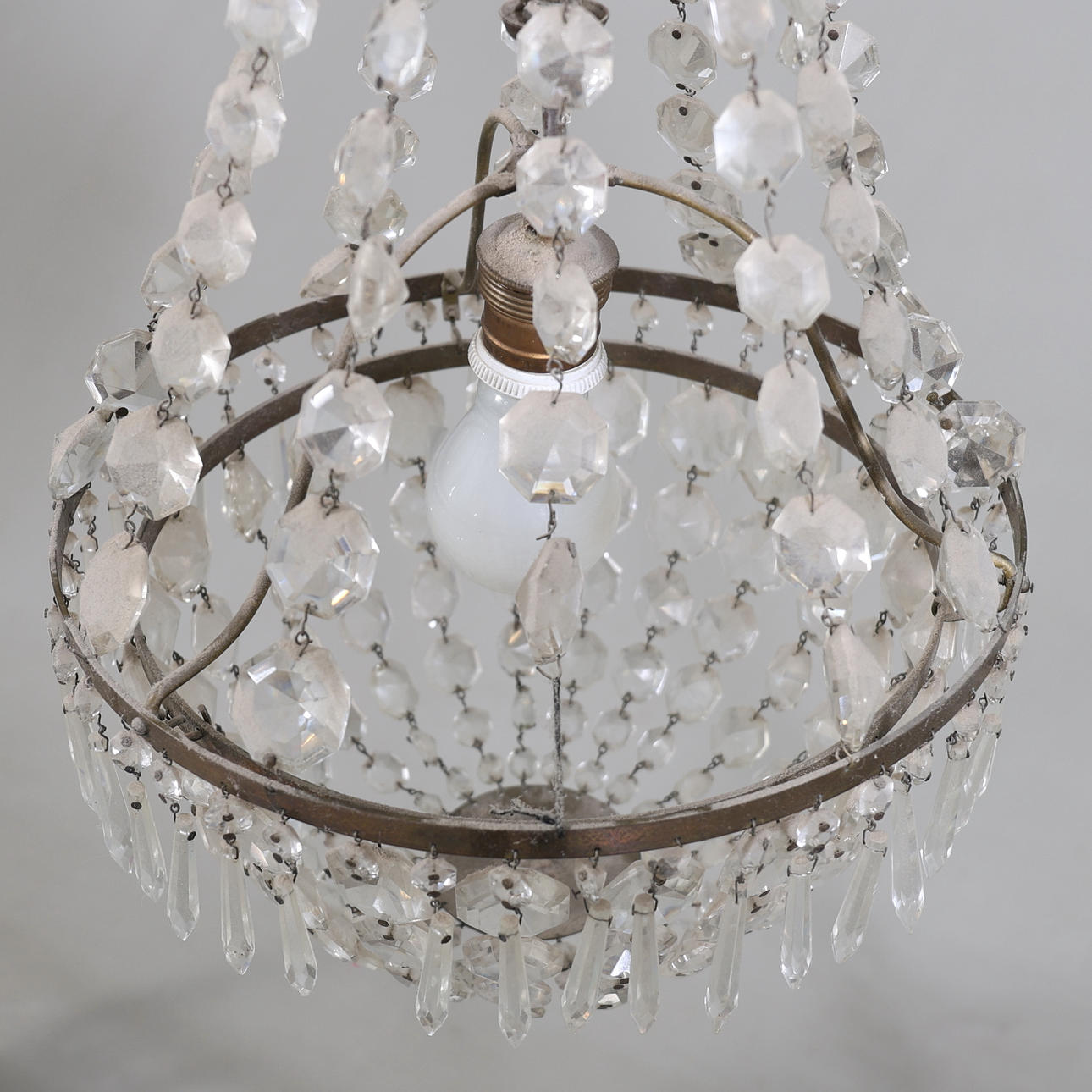 Metal frame. Hinged with prisms. It's a bright spot.