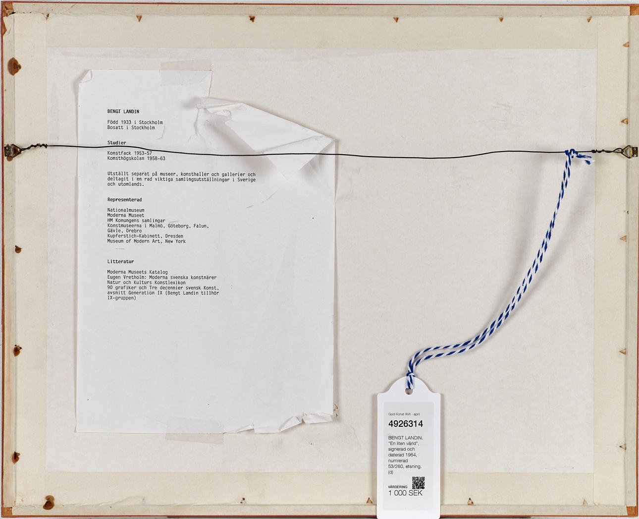4926314. BENGT LANDIN. “A Small World”, signed and dated 1964, numbered 53/260, etching.