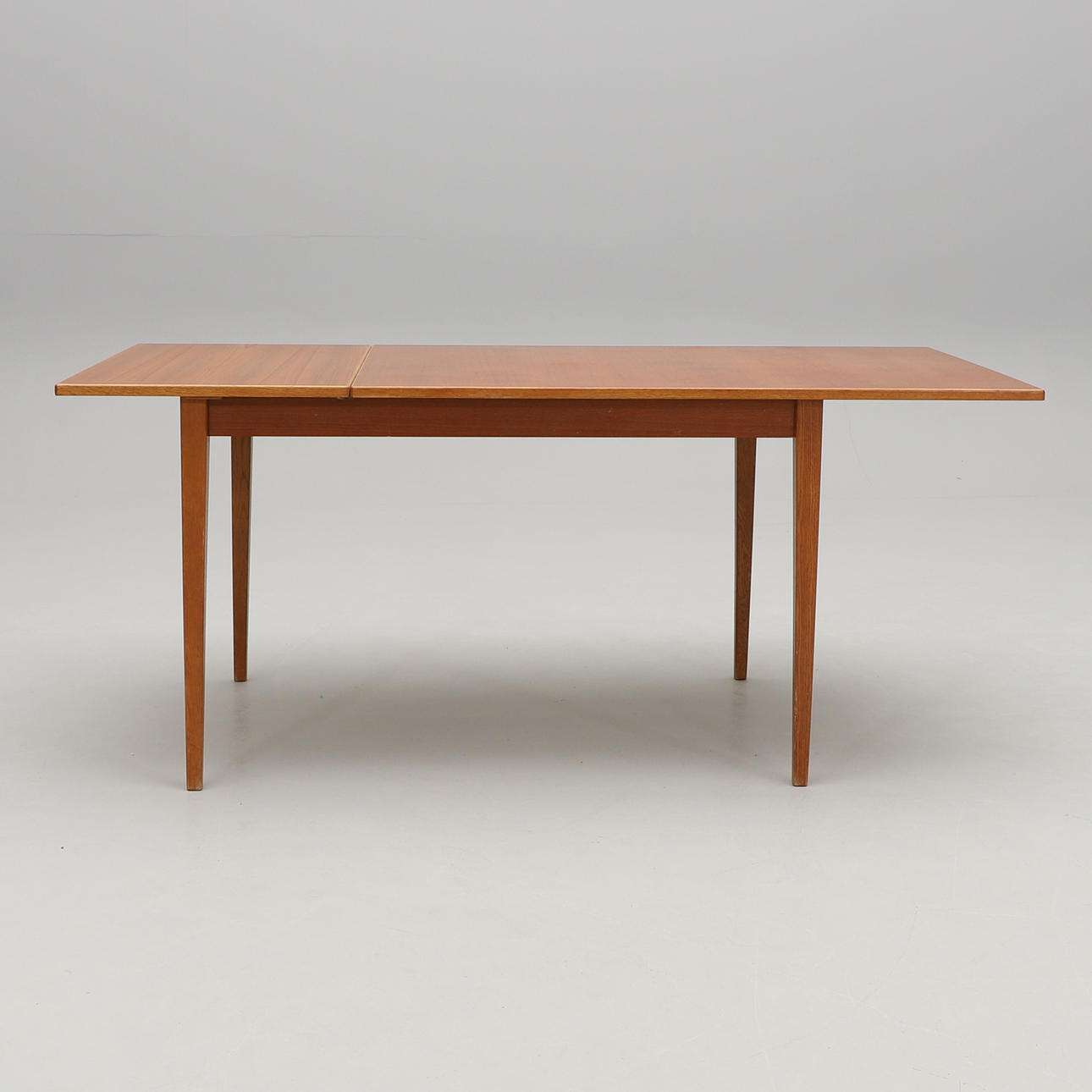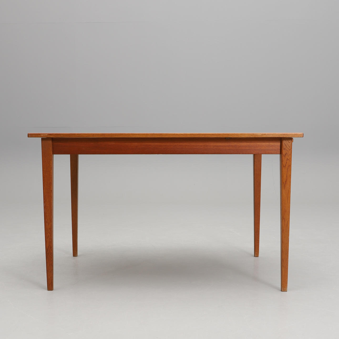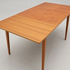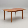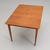 Teak and oak. Rectangular disc with pull-out disc on one short side. Length 120, width 84, height 72 cm. Pull-out disc length 45, width 50 cm.
