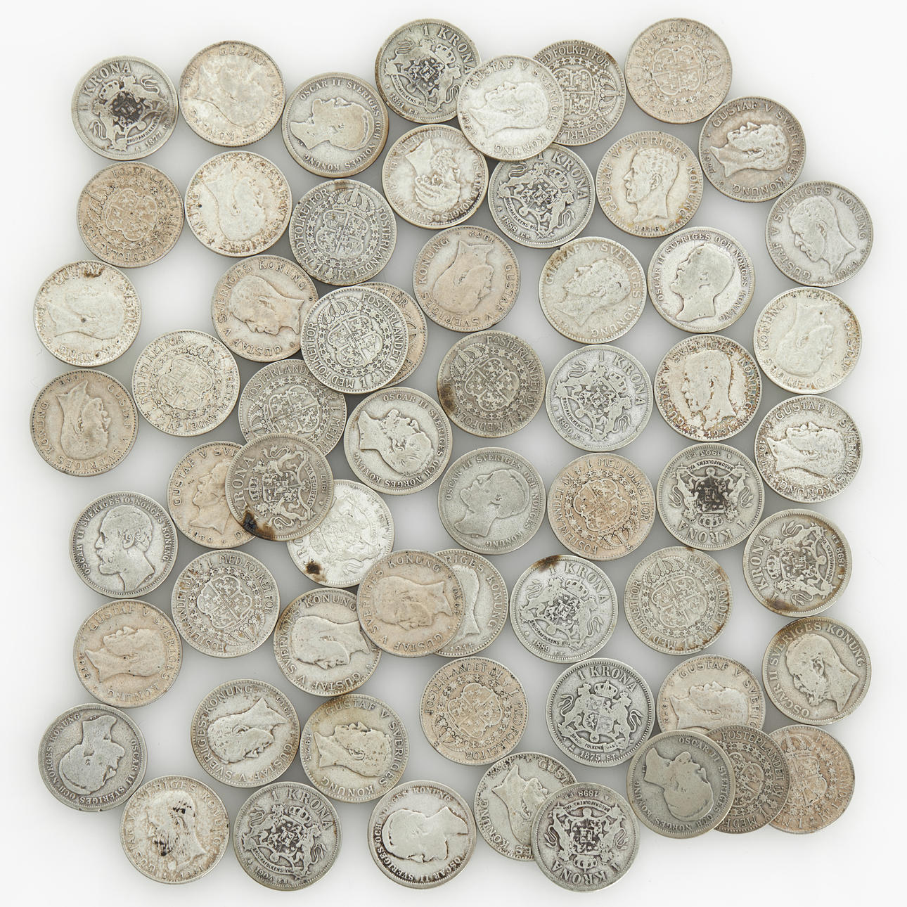 SILVER COINS, 61 single crowns 1875-1941.