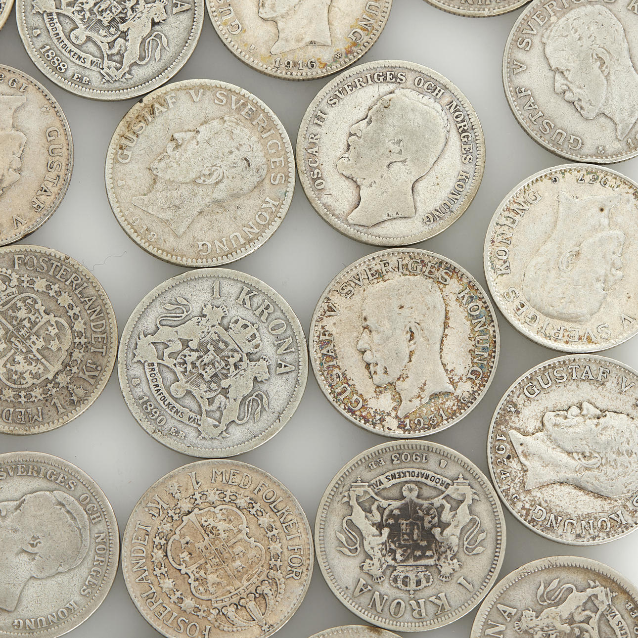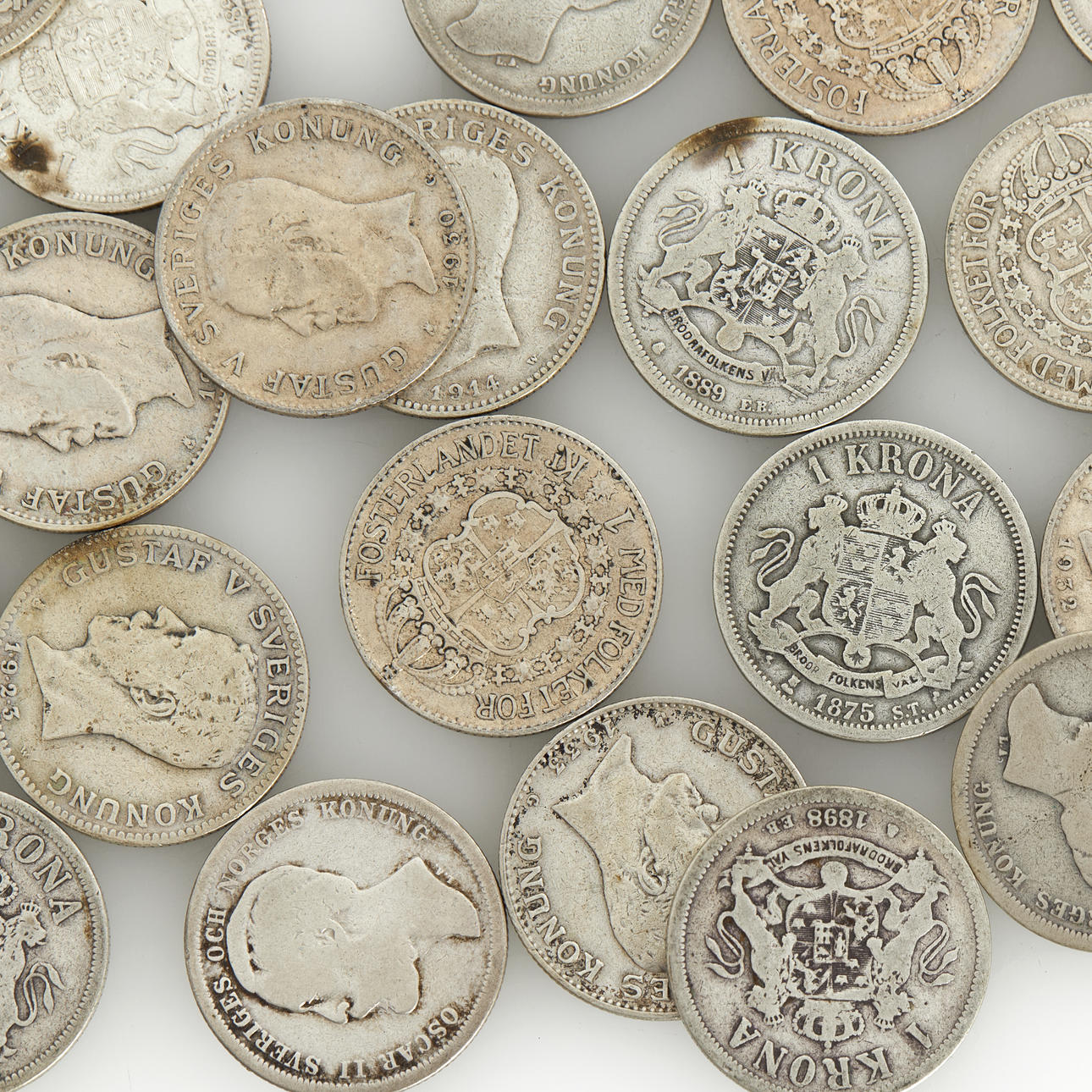 4926483. SILVER COINS, 61 single crowns 1875-1941.