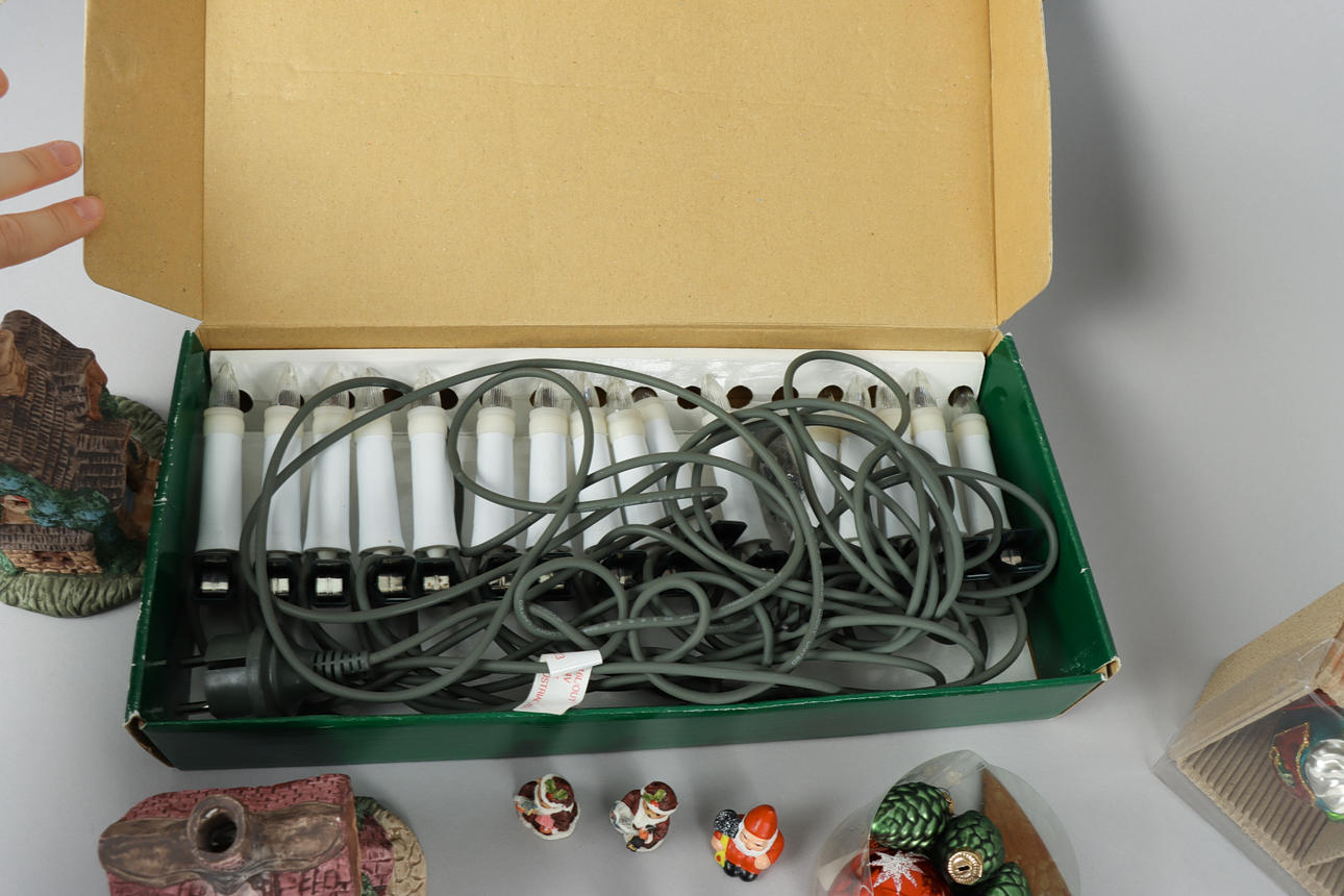 Christmas tree lights, balls, houses and more.