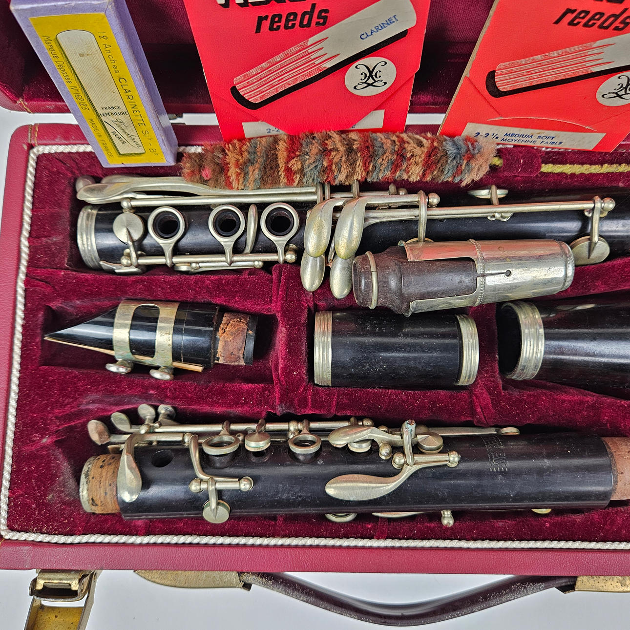 Bag, approx. 35x18x10 cm. Clarinet, length approx. 66 cm.