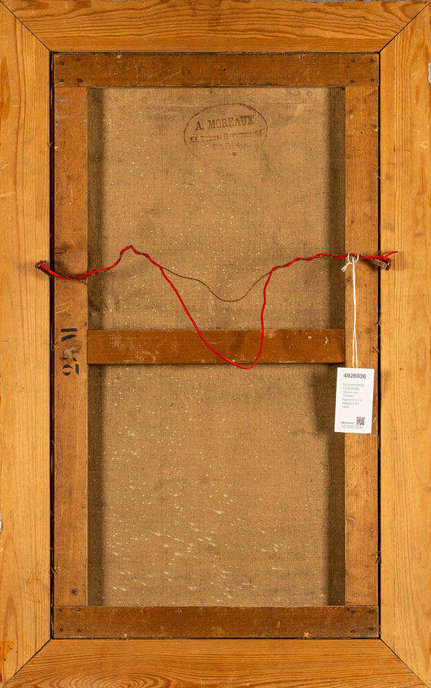 The canvas is of French manufacture with a stamp from artist supplier A. Moreaux, active in Montparnasse during the period, which confirms its dating and availability.