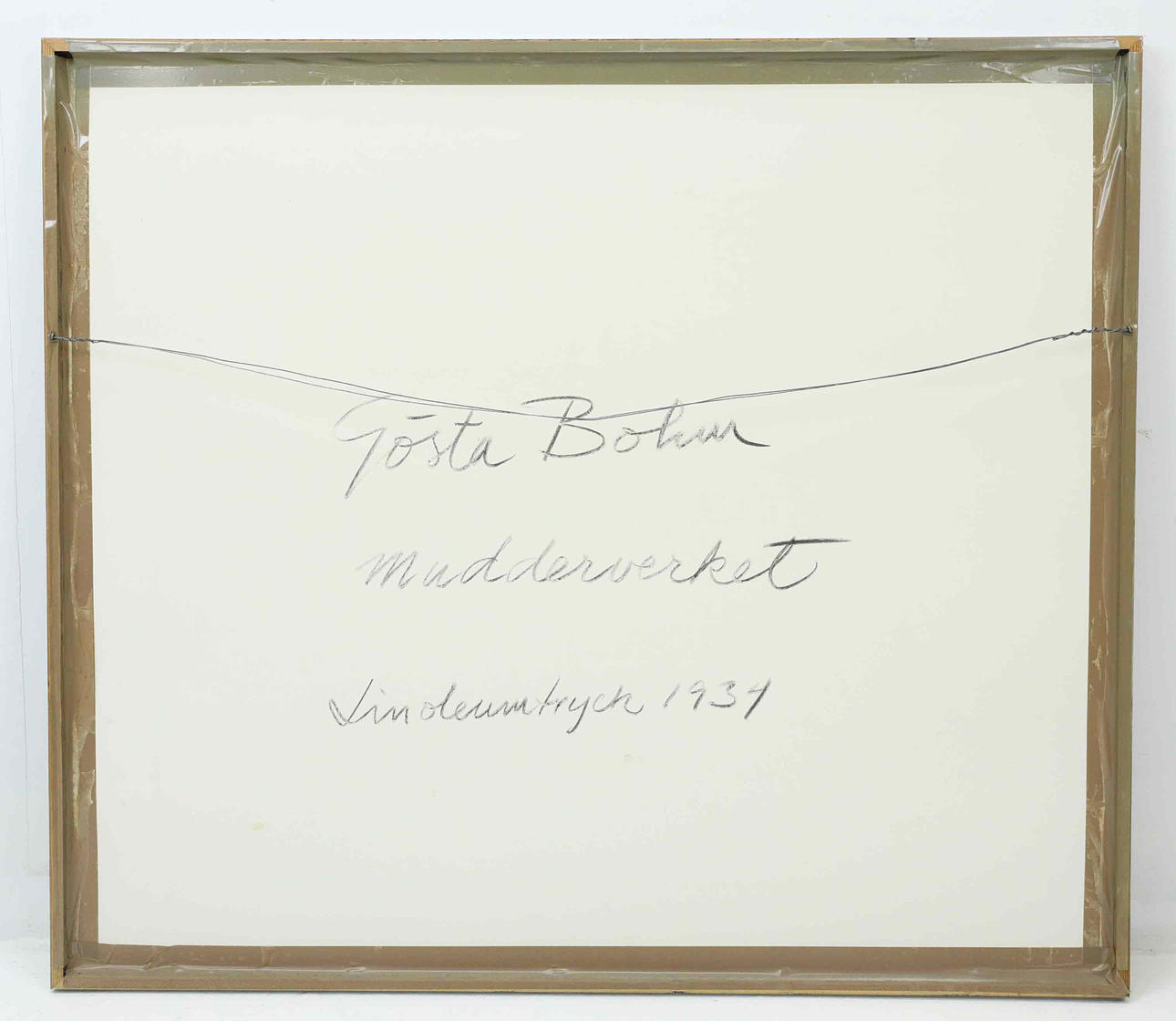4927164. GÖSTA BOHM. Linoleum cut, “The Mudderverket”, signed, dated 1934.