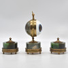 TABLE SET WITH BALL CLOCK, GLASS/ BRASS/ NEPHRITE, ENGRAVED DIAL, CIRCUMFERENTIAL ROSE DECORATION, 20TH CENTURY.