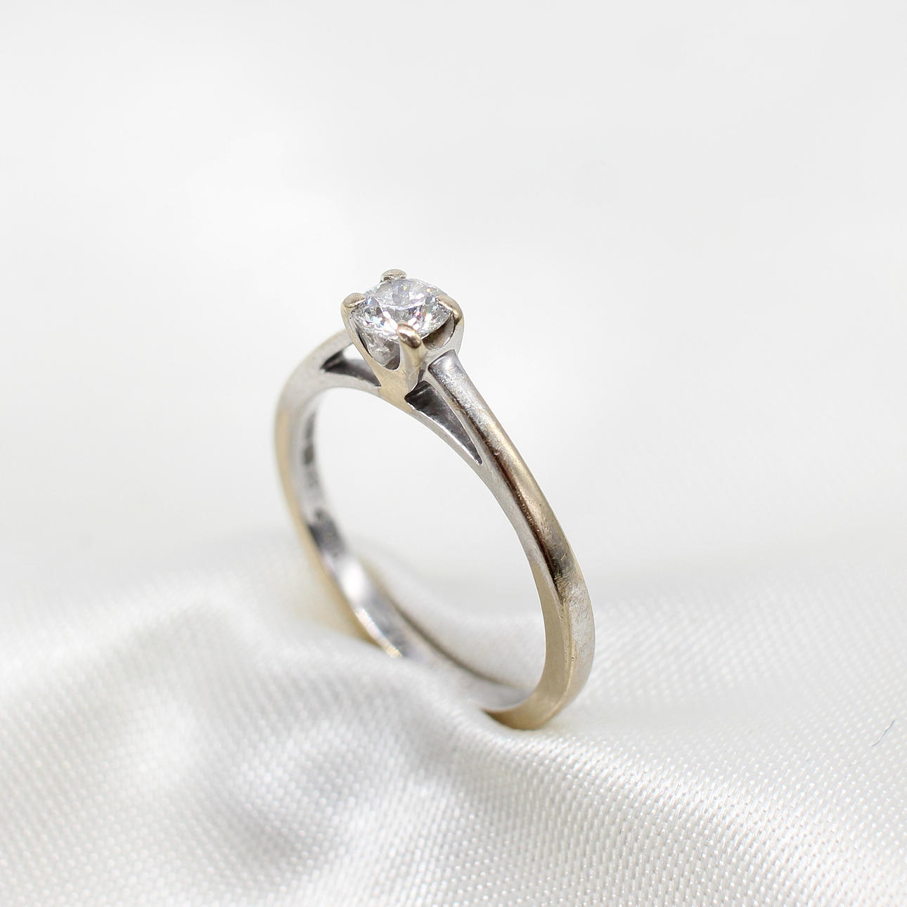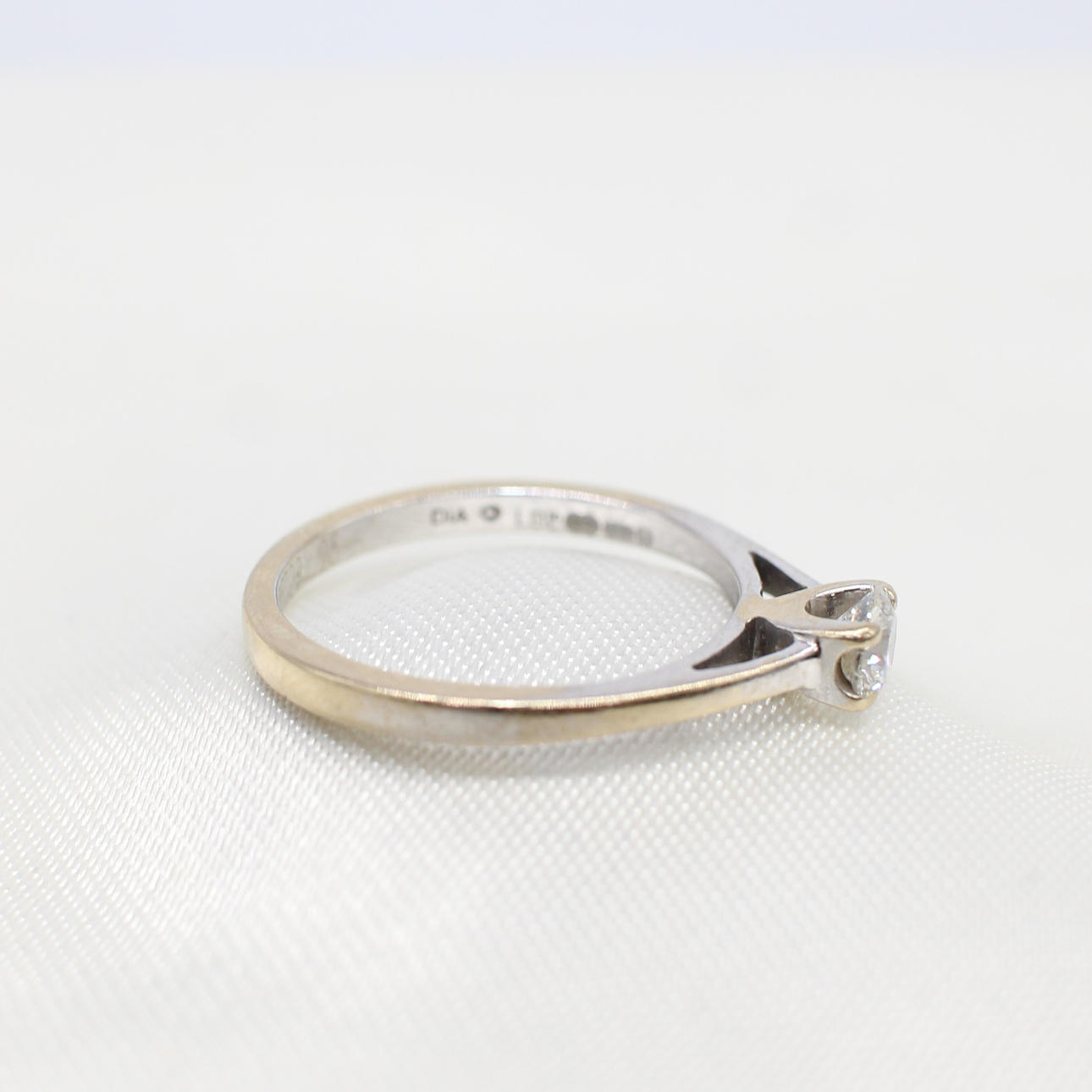 An 18ct White Gold (Stamped) Round Brilliant Cut Diamond Solitaire Ring Inscribed Inside The Band "Forever". This Inscription Has An Additional Diamond Set Into The "O".