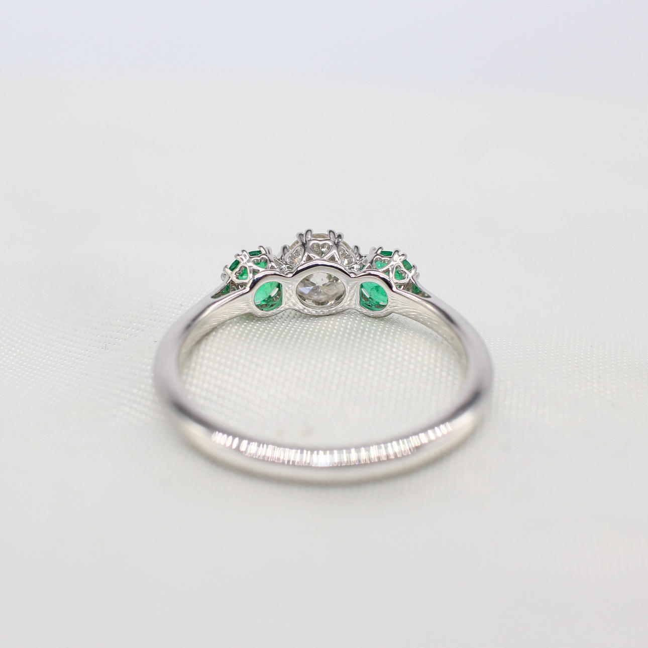 4927342. EMERALD & DIAMOND TRILOGY RING.