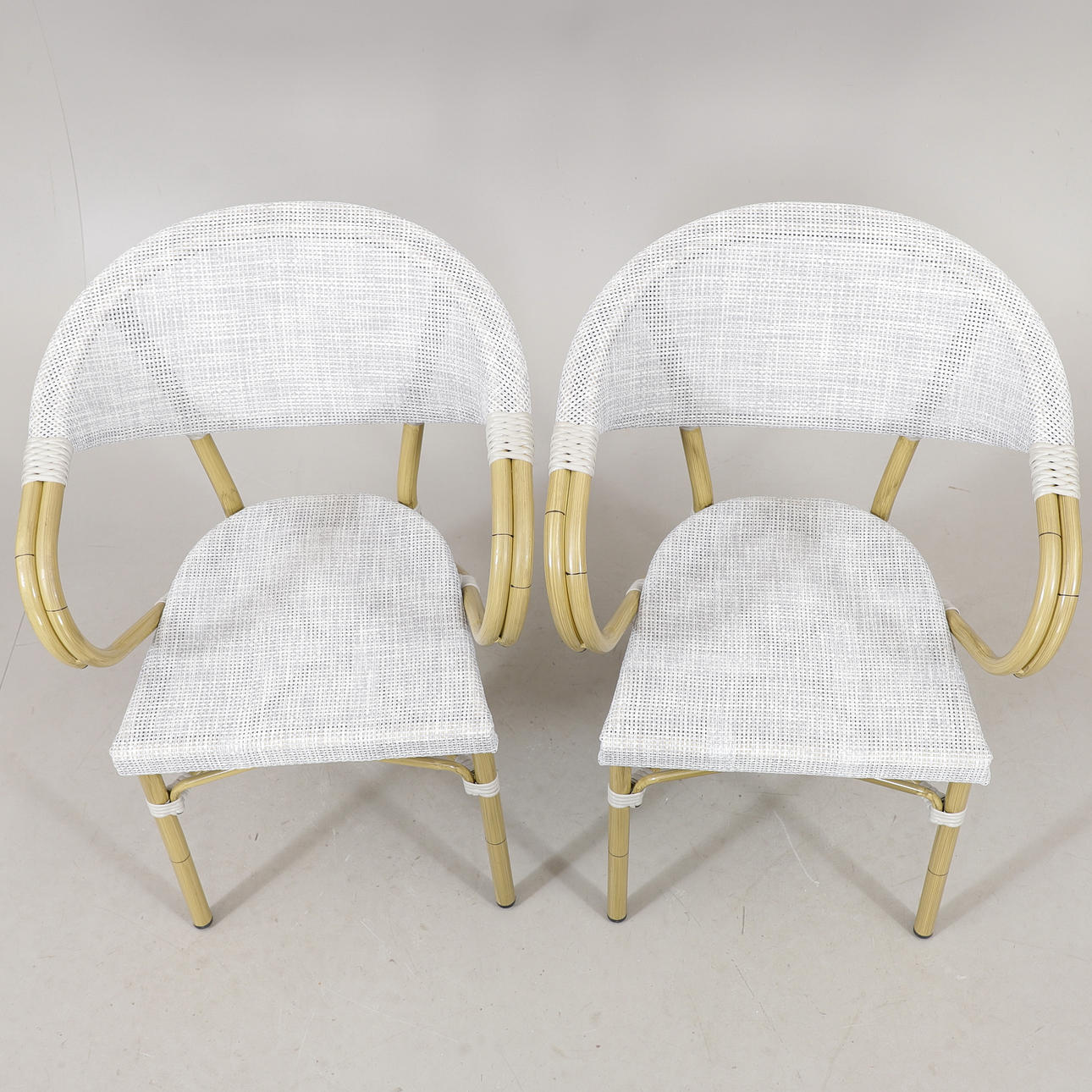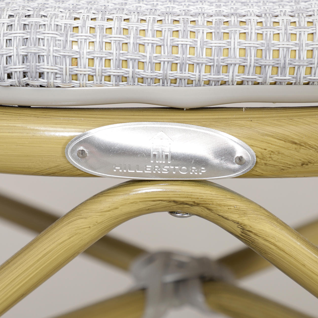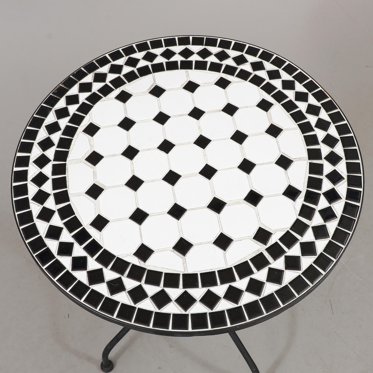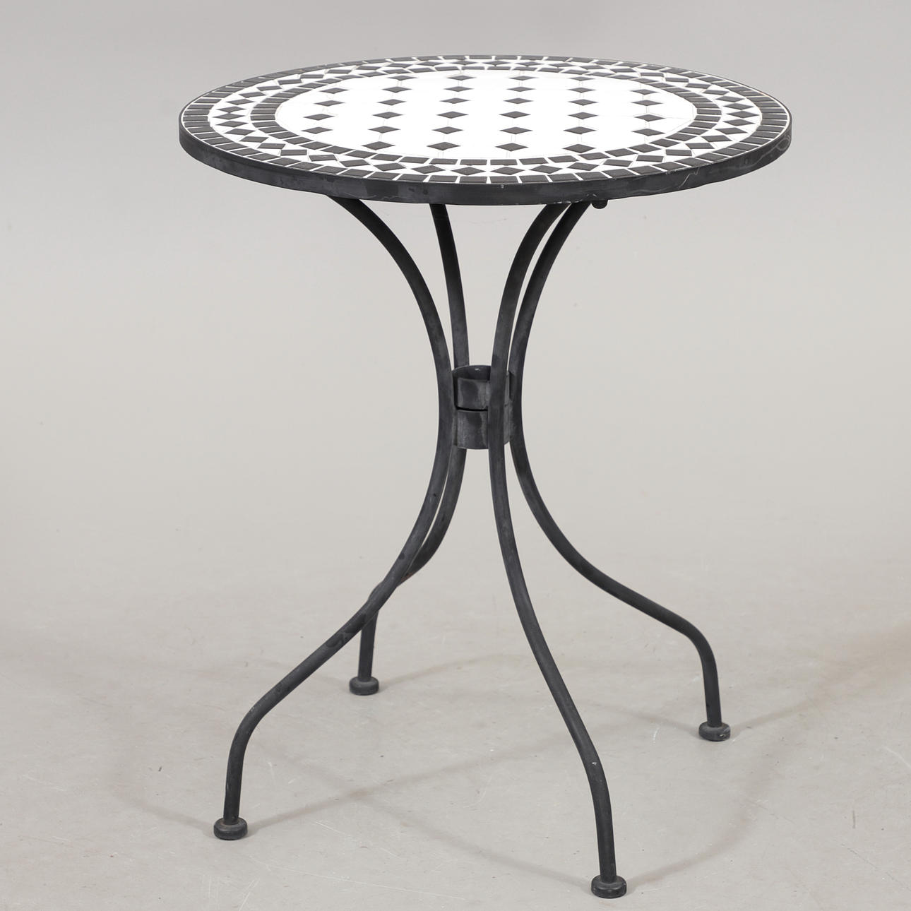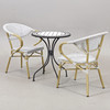 2 chairs, Hillerstorp, back height 82,5, seat height 46 cm Table, mosaic/metal, height 71,5, diameter 60 cm.