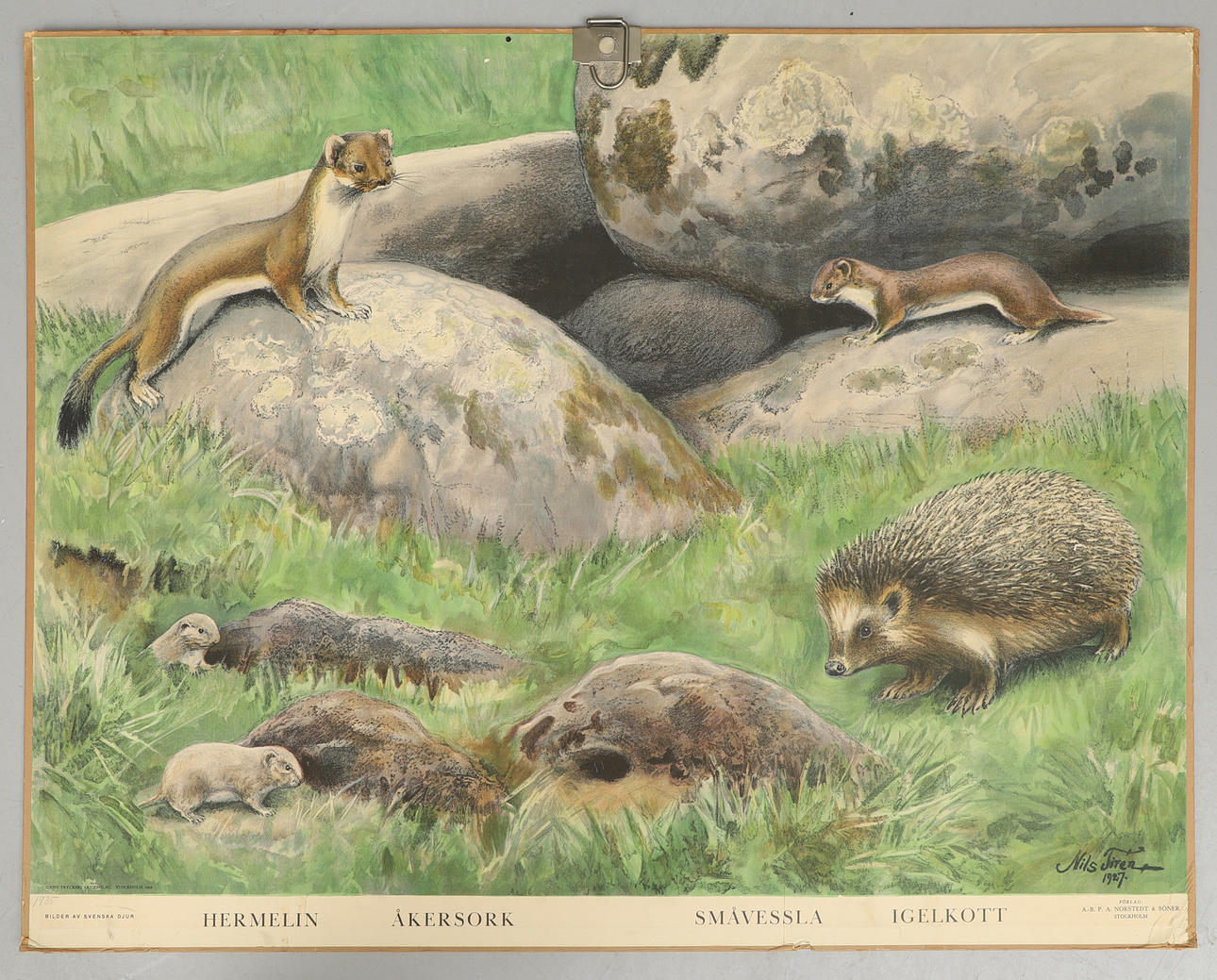 Badger, moose, hare, mallard/beaver (double-sided) and hedgehog etc.. Dimensions smallest plate 65 x 85 cm, largest plate 74 x 96 cm.