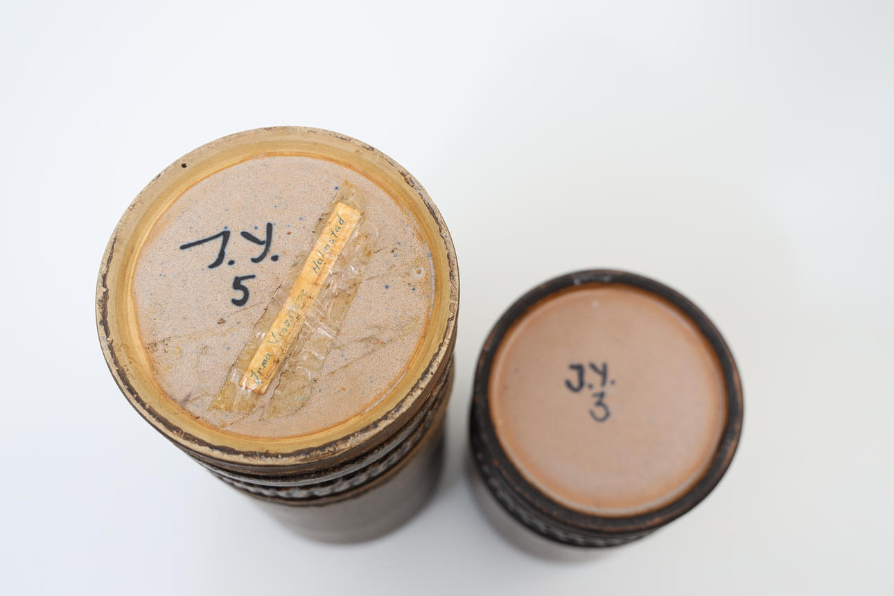 IRMA YOURSTONE. Vases, 2pcs, glazed earthenware with relief decor.