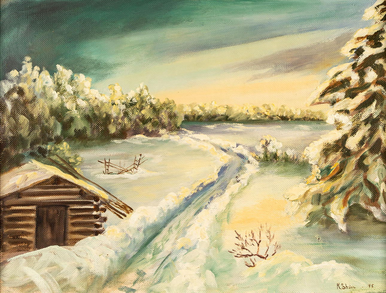 4928219. OIDENTIFIERAD KONSTNÄR. Oil on panel, Signed, dated 1945.