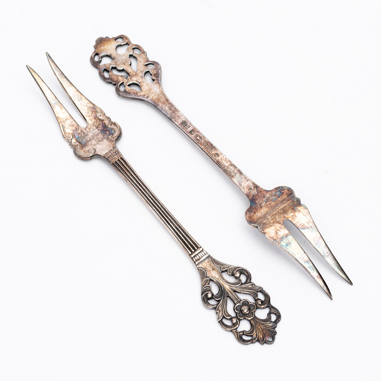 Forks, a pair, Norway, Swedish import stamps, length approx. 10,5 cm.