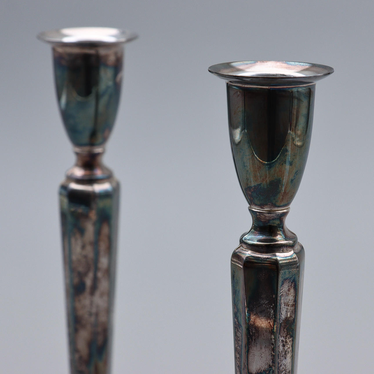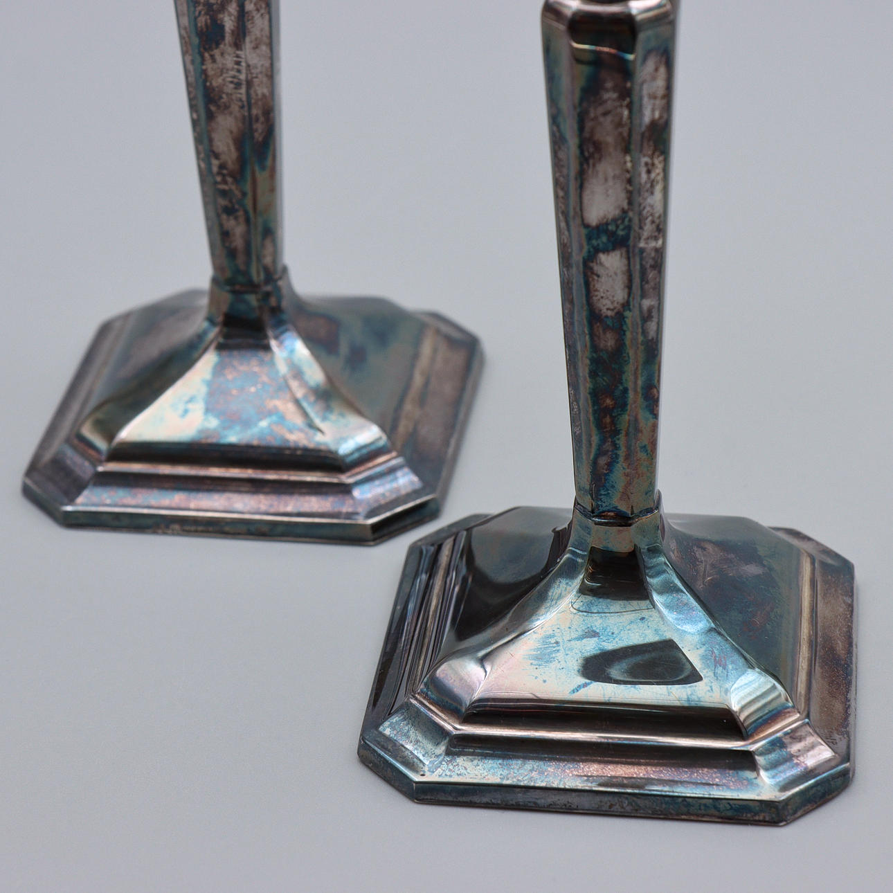 CANDLESTICKS, PAIR, NICKEL SILVER.