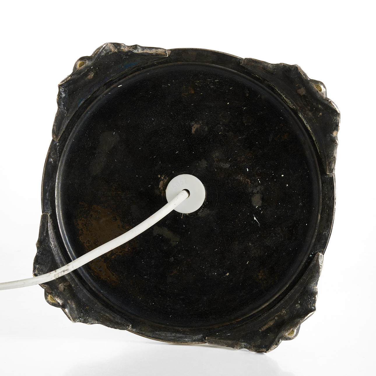 Hammered decor with flower petals and insects. Unclear stamp.