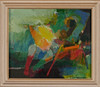 4929692. EBBE EBERHARDSON. Woman in deckchair, oil on plate, signed E. Eber.