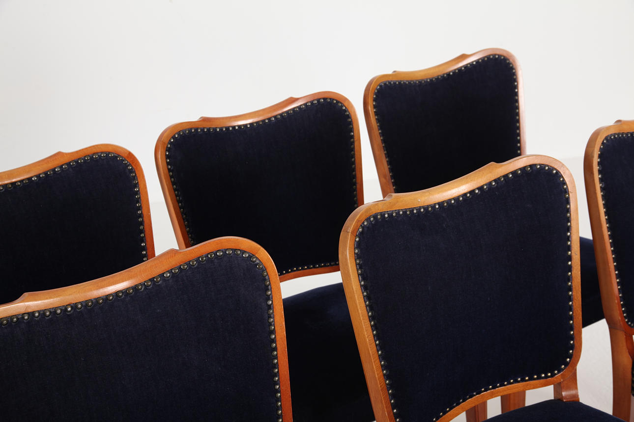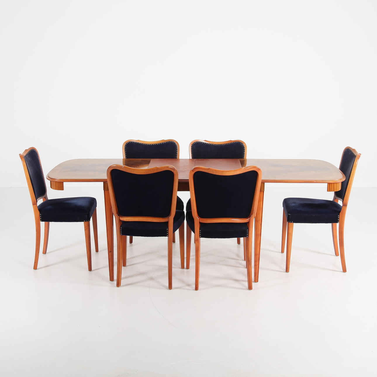 4929702. DINING TABLE WITH INSERTS AND 6 CHAIRS, Sweden 1950's.