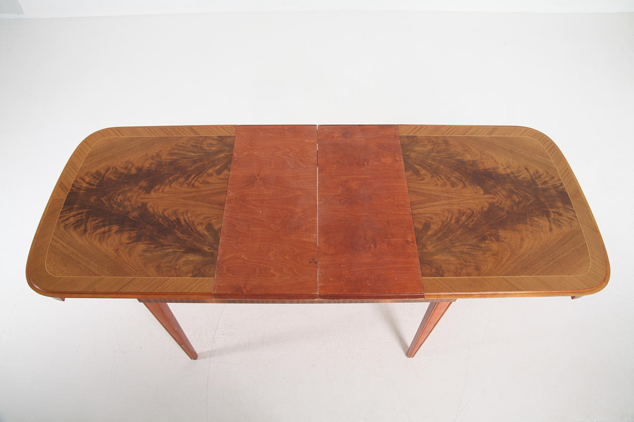 Dining table with mahogany veneer top,.