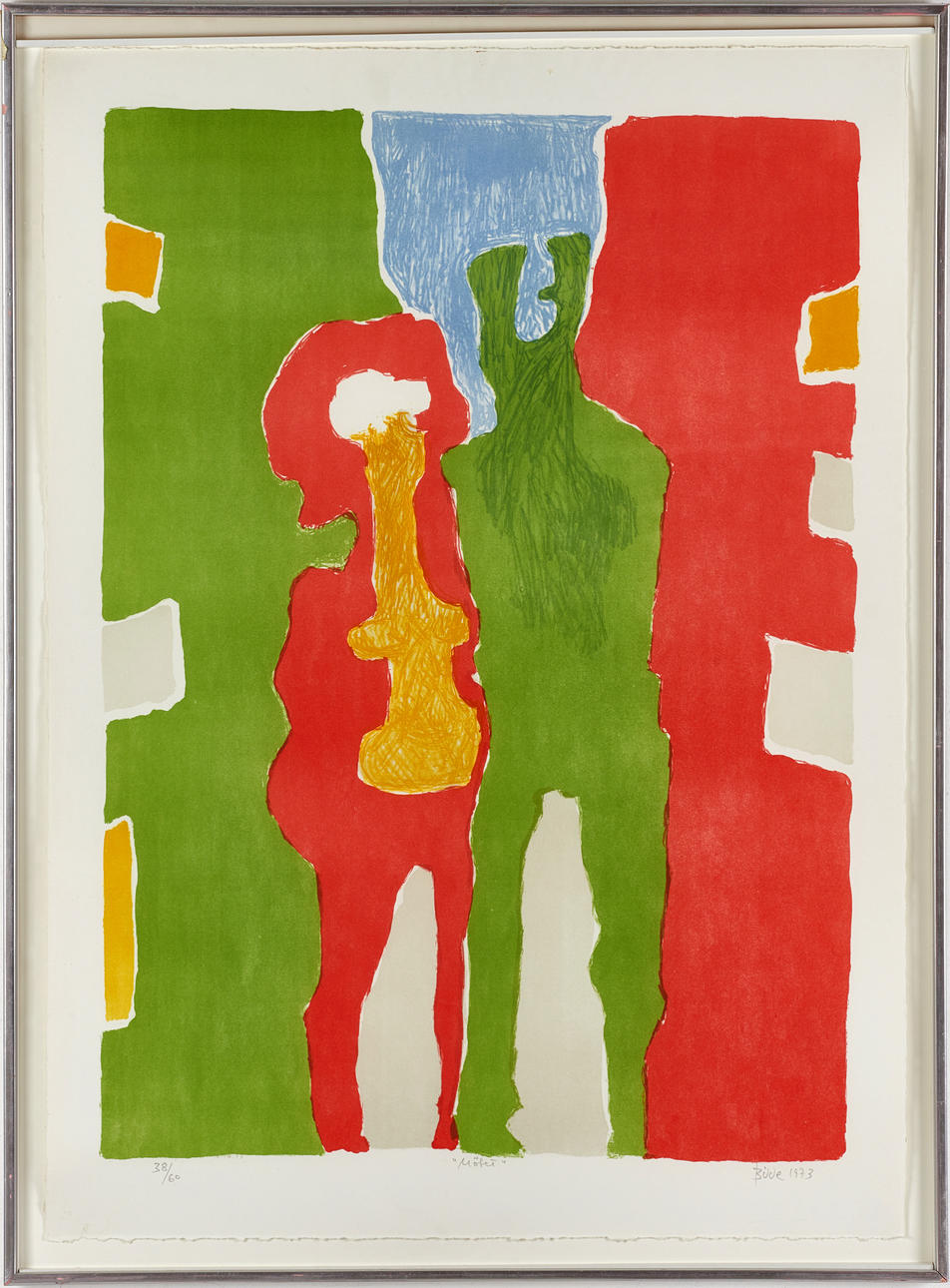 4929963. MAX BILDE (1919-2011). “THE MEETING”, signed and dated Bilde 1973, numbered 38/60, lithograph in colours.