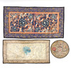 Embroidery with decor of blue flowers against red background, size approx. 73x 38 cm