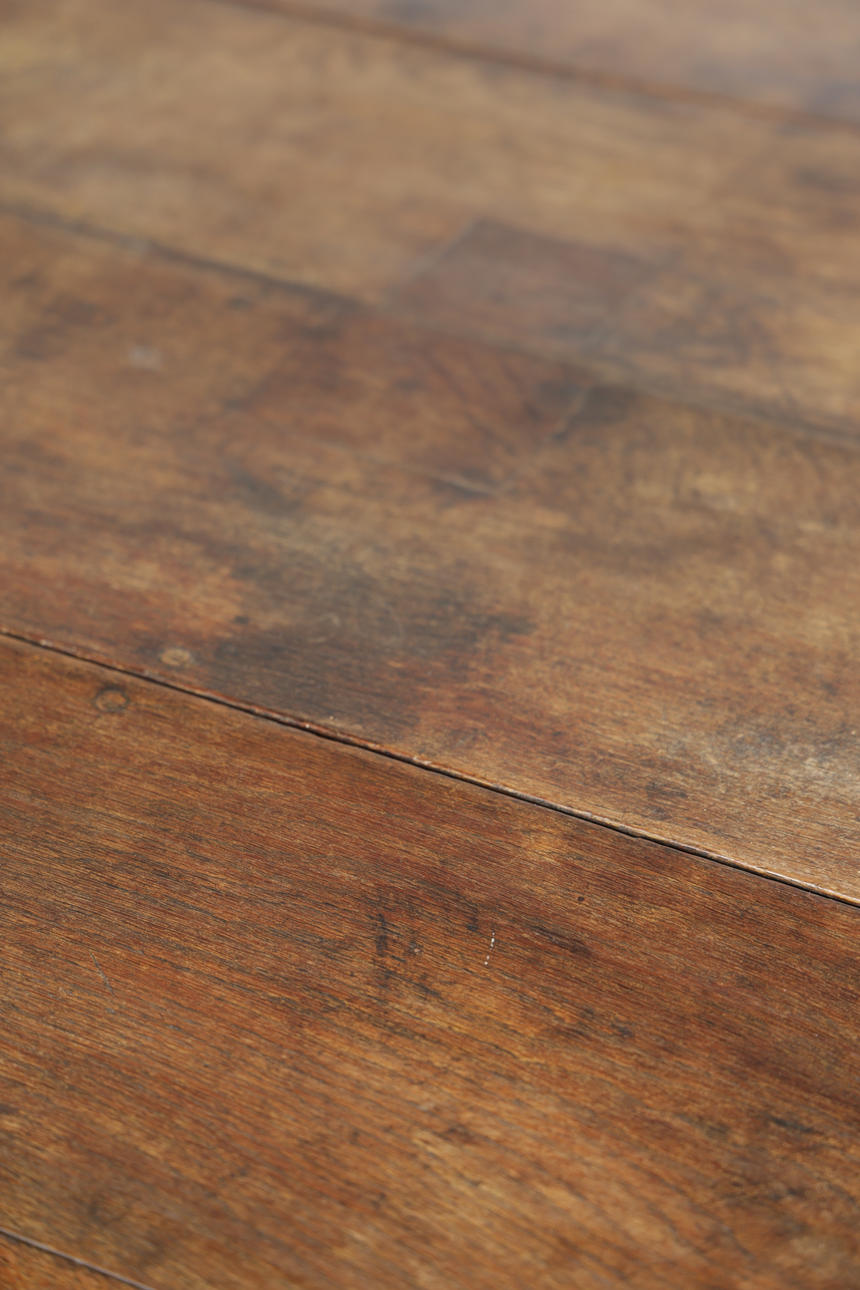 Two patch repairs to the top, plank split which has been filled with timber, woodworm.