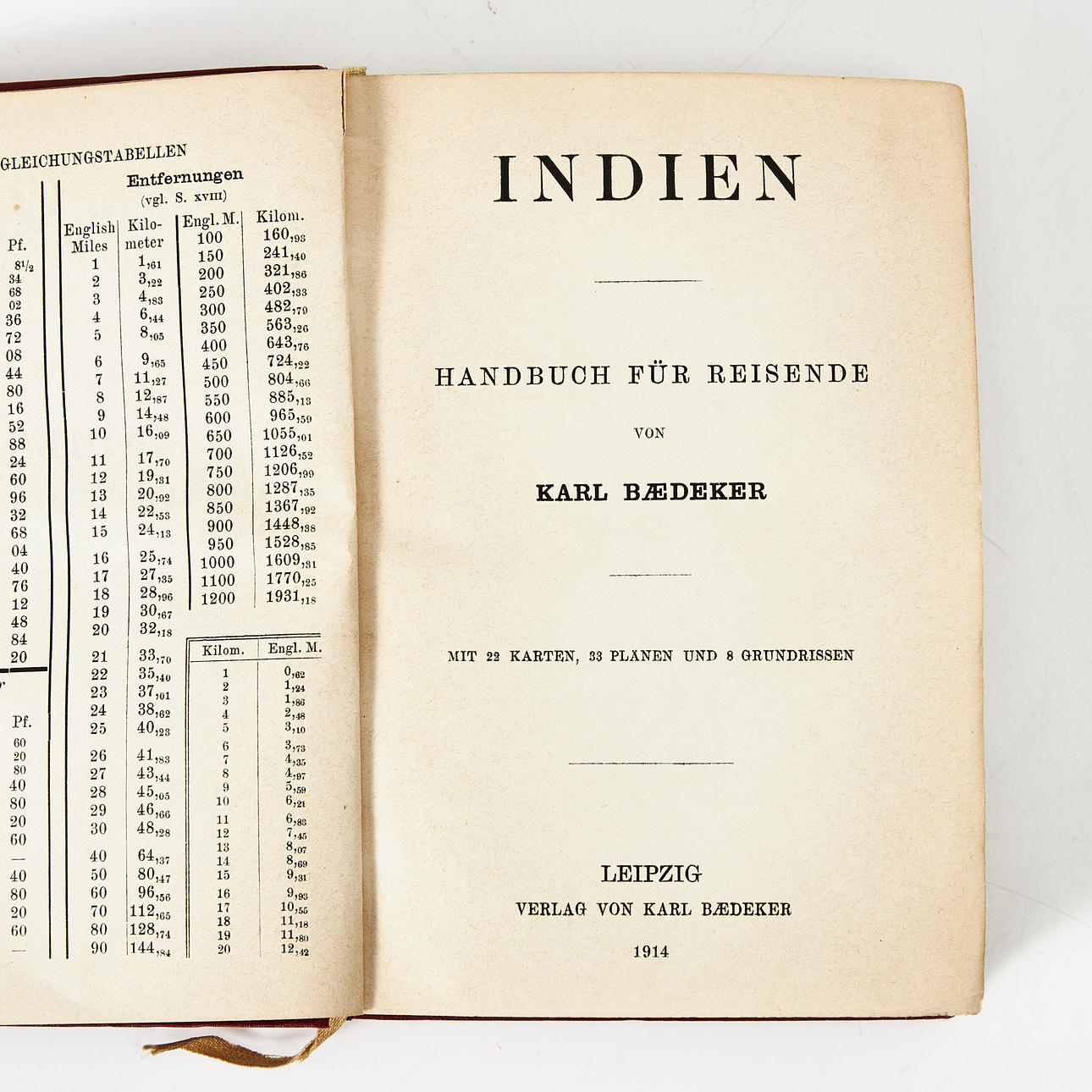 BAEDEKER, KARL. India. Handbook for Travellers. Leipzig (Verlag von Karl Baedeker) 1914, first edition.