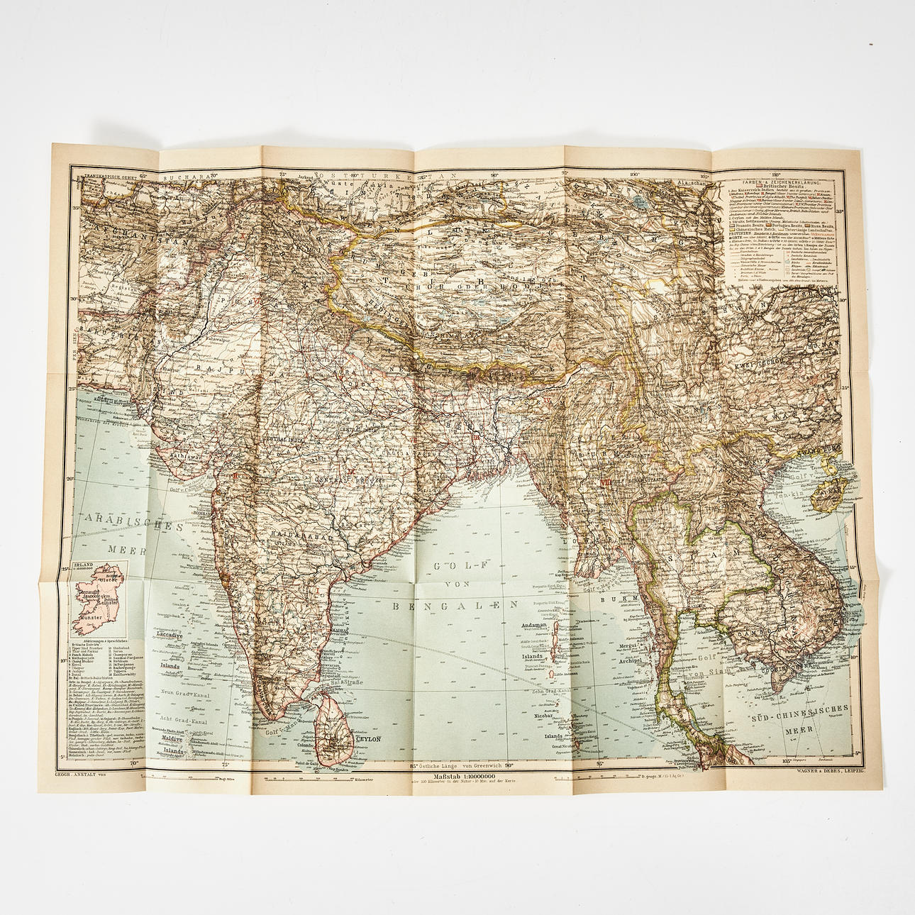 Small 8:o (about 160 x 115 mm). Large foldable map of India, Burma and Southeast Asia (2 copies) in a pocket in the back cover, maps and plans and illustrations in the text. Publisher's red orb ribbon with title in gold on back and front cover, marbled cut.