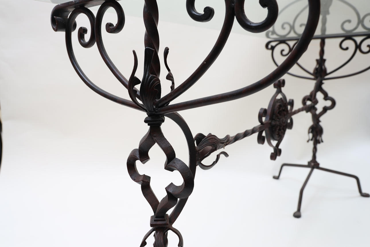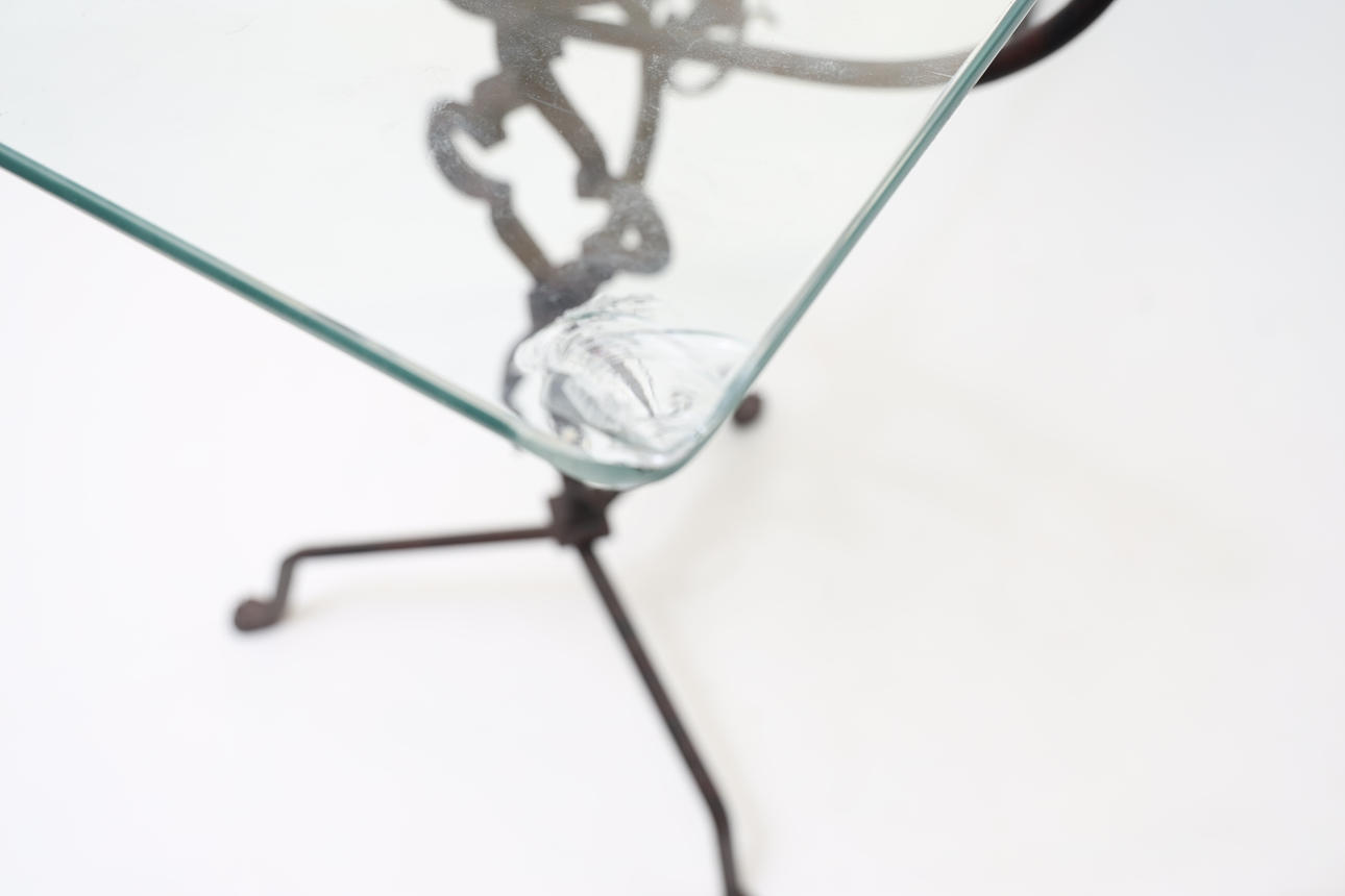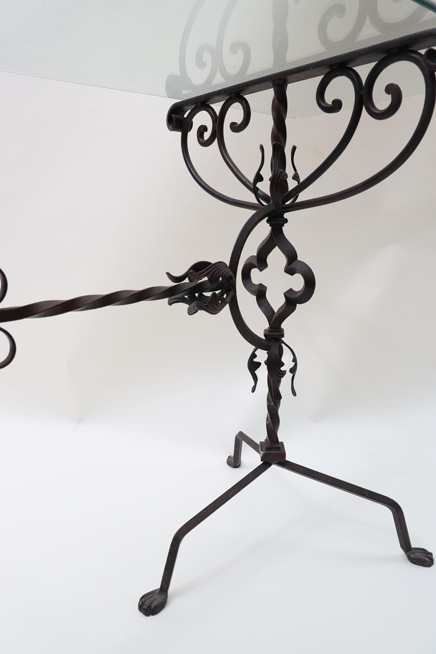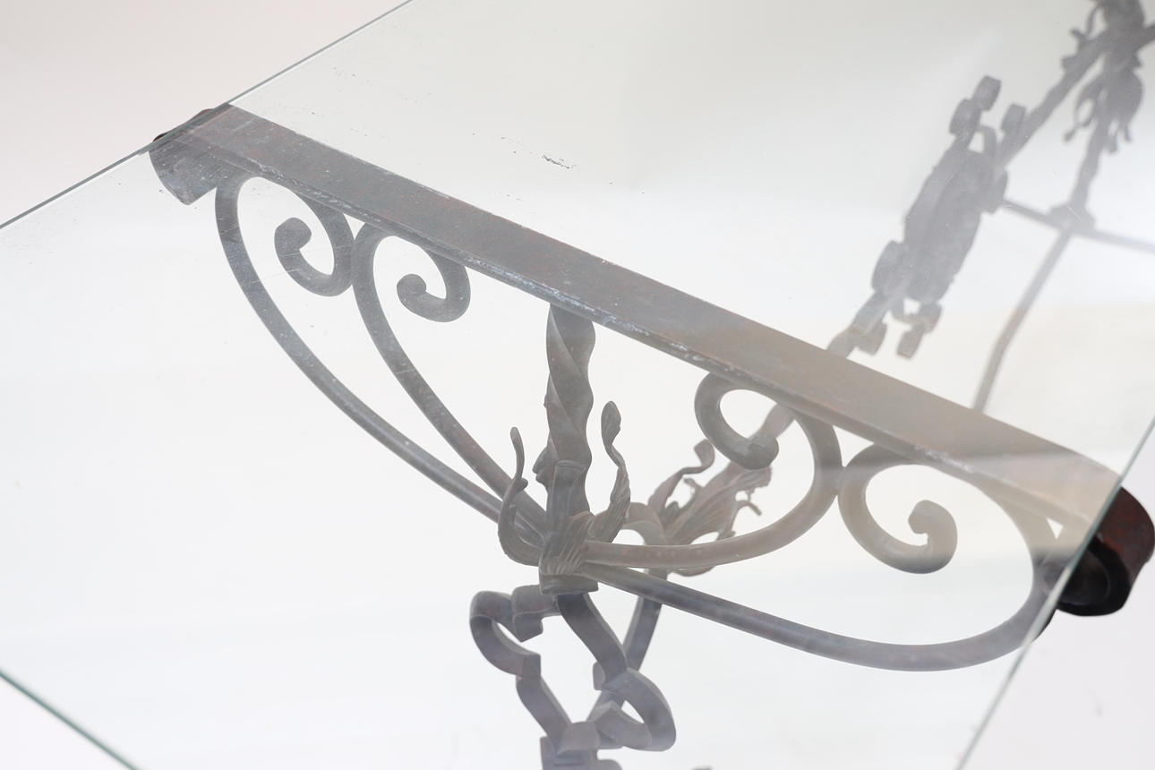 Patinated iron forge, send of glass. Height 92cm. Width 200 x 56cm.