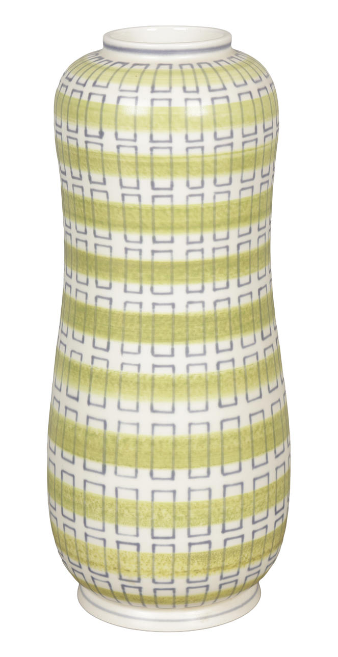 Designed by Alfred Read and painted by Gwen Haskins, the 'Freeform' peanut vase of cylindrical waisted form with a raised collar, shape no. 701, painted PJL mark to base, 32cm height.