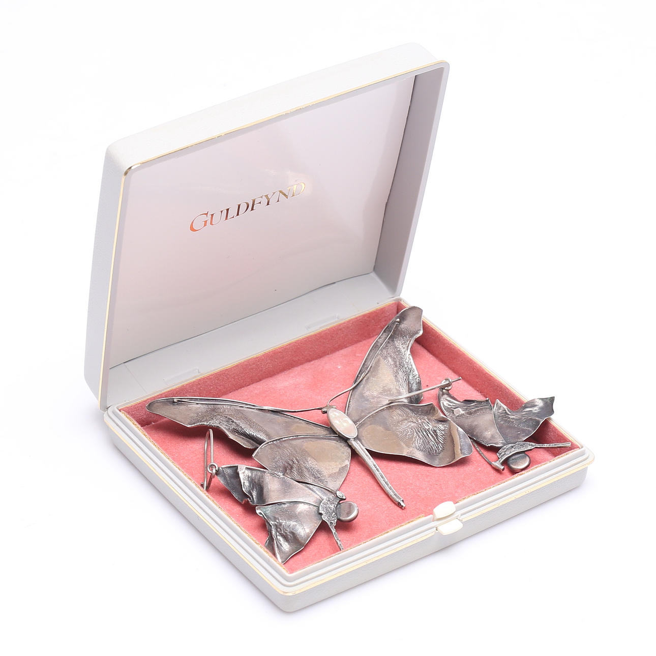 Butterflies. Brooch ca 8x6 cm. Earrings about 4 cm.