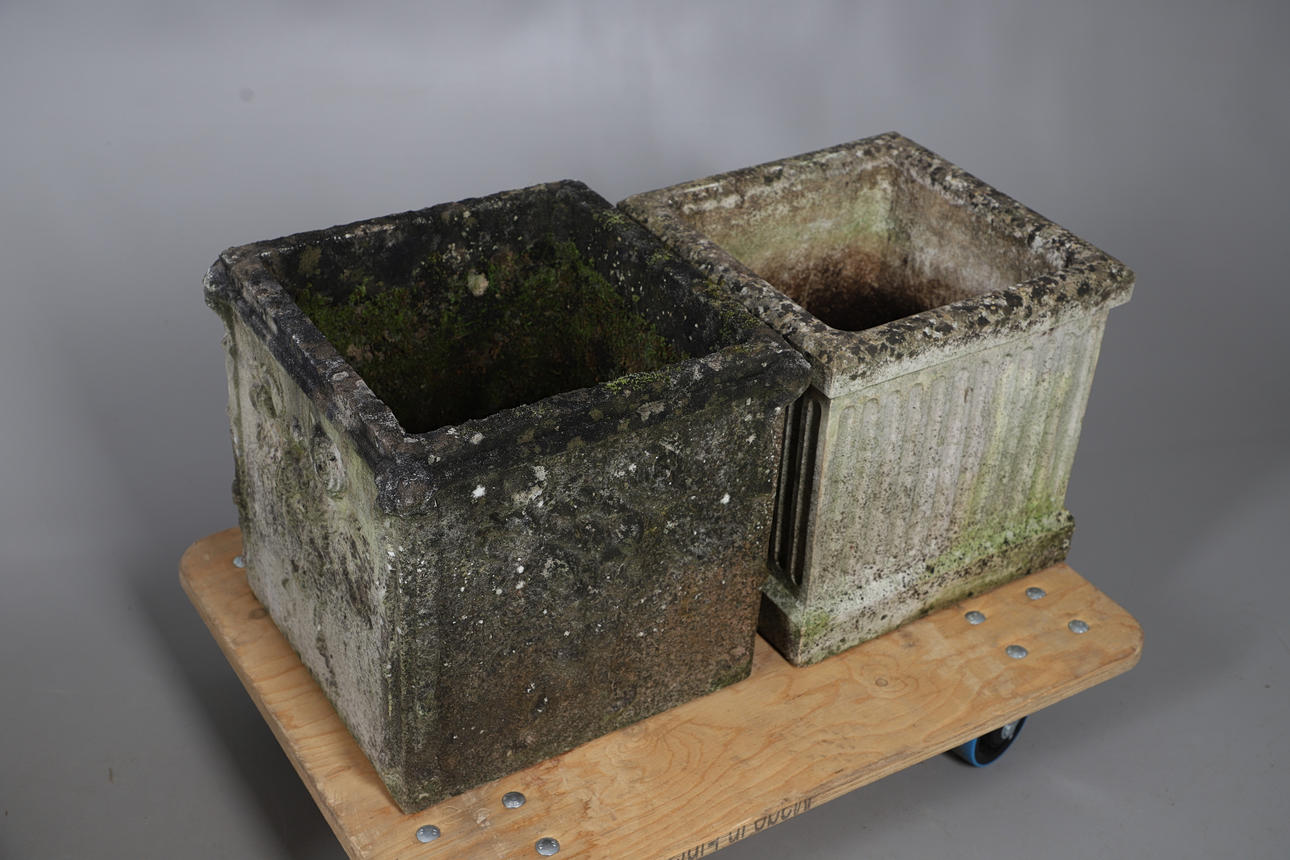 4931018. THREE RECONSTITUTED STONE SQUARE GARDEN PLANTERS.