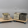 Largest heavily weathered with moss to the interior, minor losses. Weathering to other two.