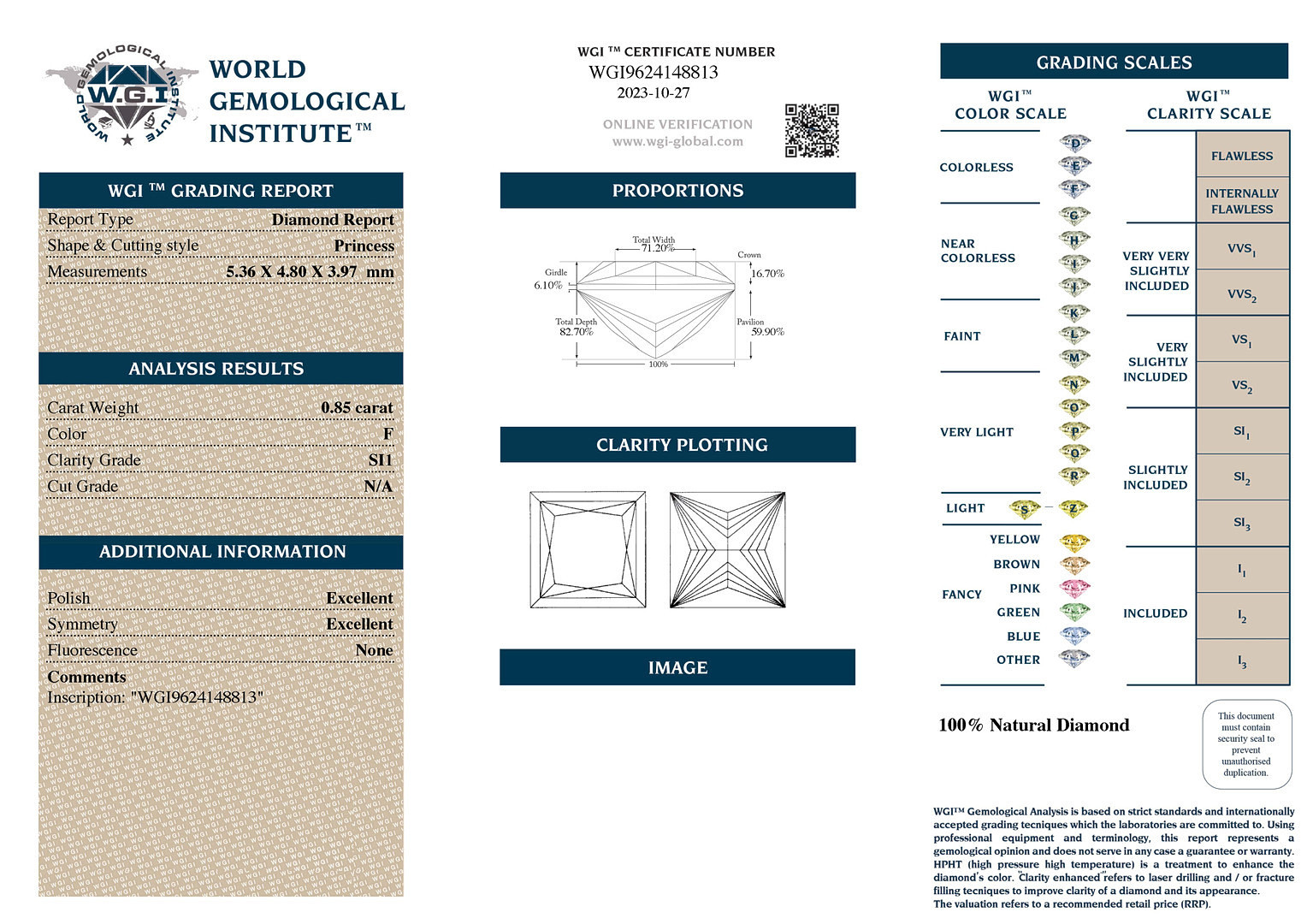 4931125. 0.85CT PRINCESS CUT SOLITAIRE RING.