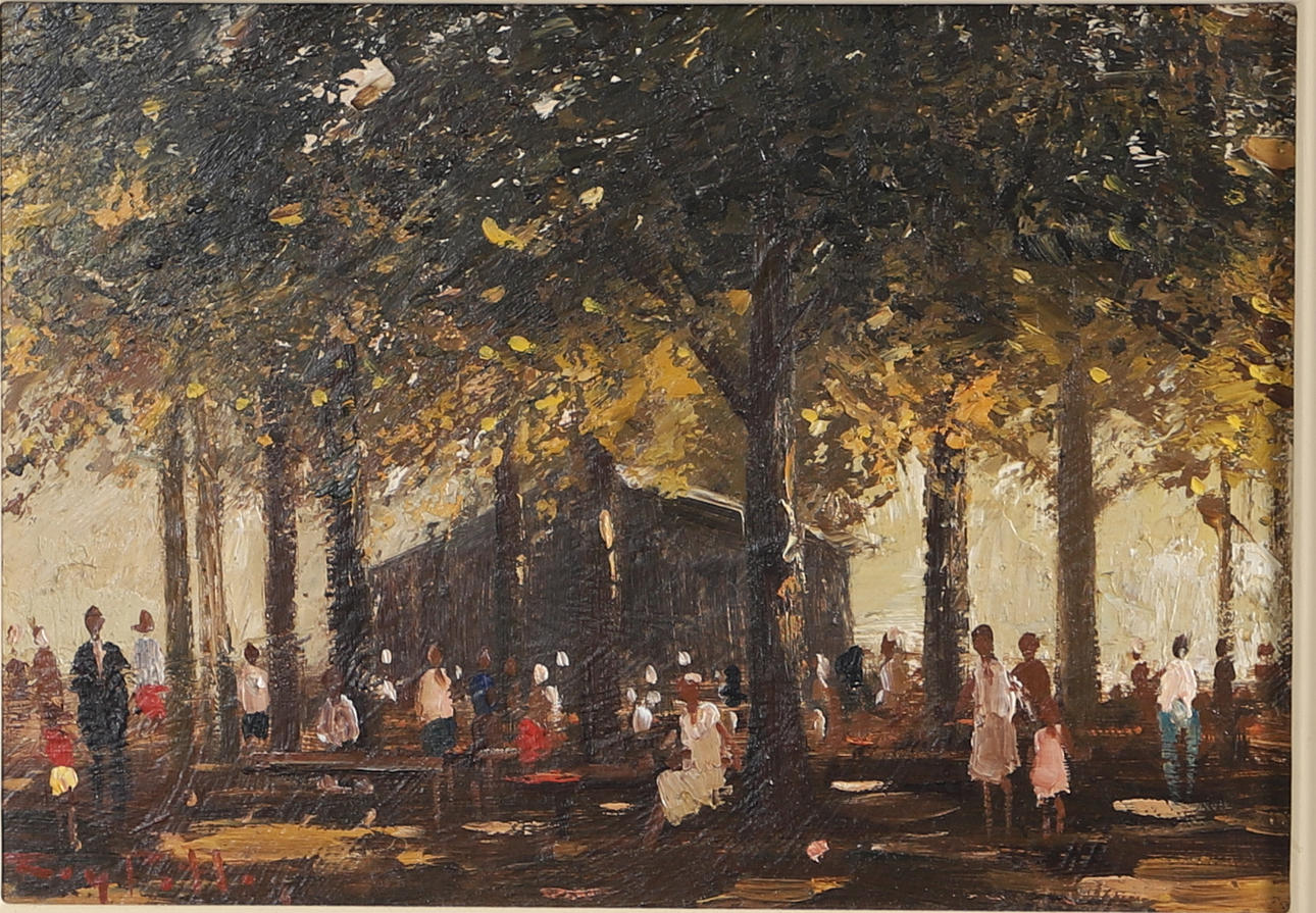 Signed lower left, oil on board, 24cm x 35cm (46cm x 56cm including frame).