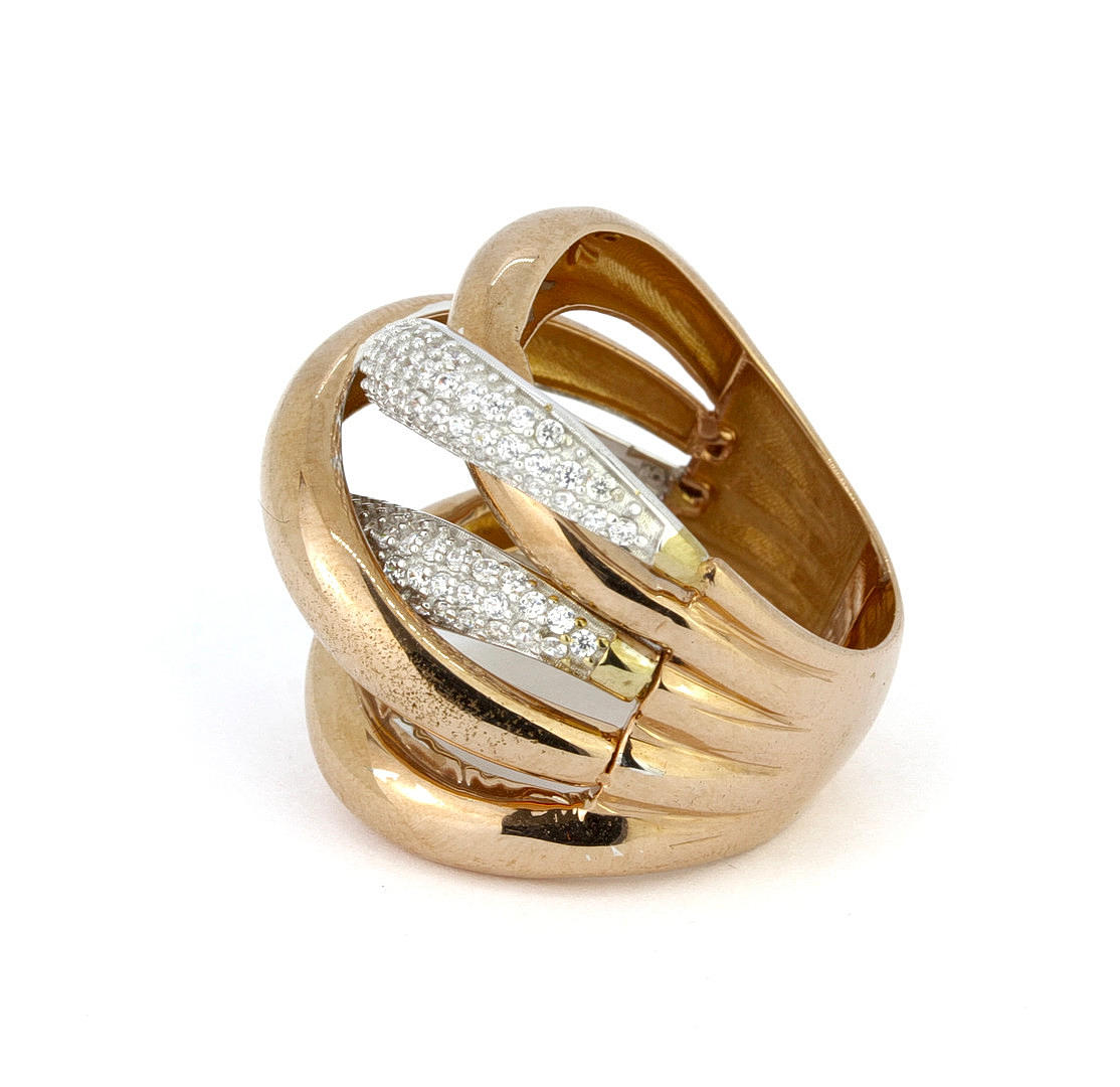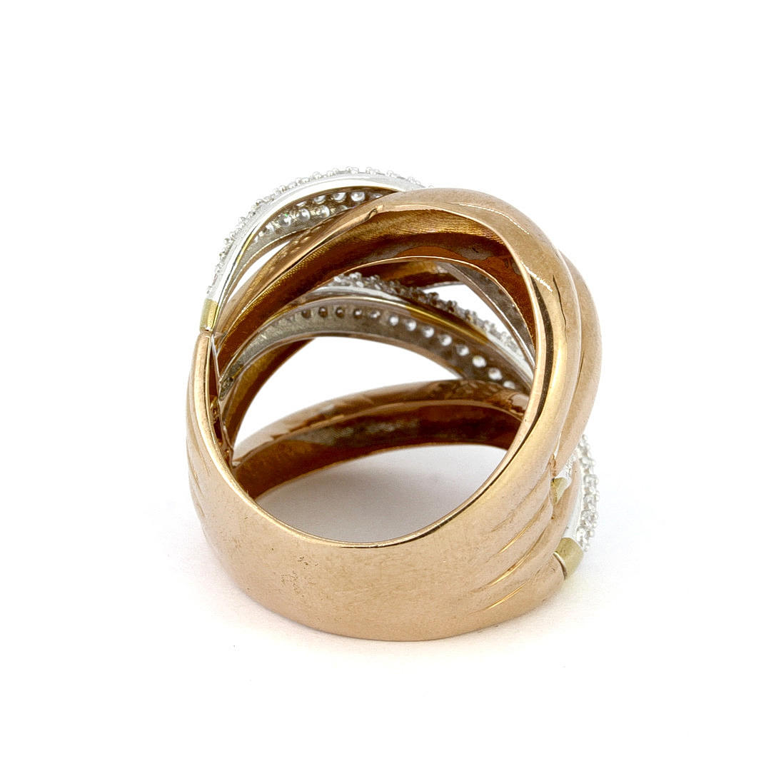 An 18ct rose and white gold ring set with brilliant cut diamonds, approx. 0.40ct overall. UK ring size P, overall 10.5g. L. 2.5cm.