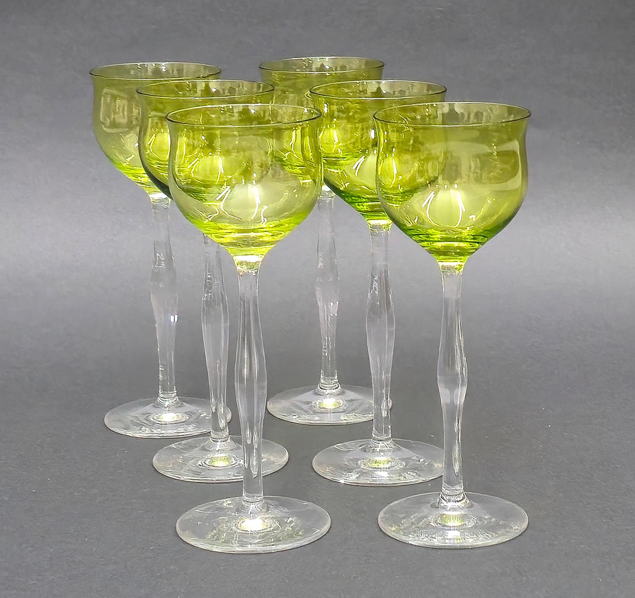 4932181. 6 APPLE GREEN CRYSTAL GLASSES.