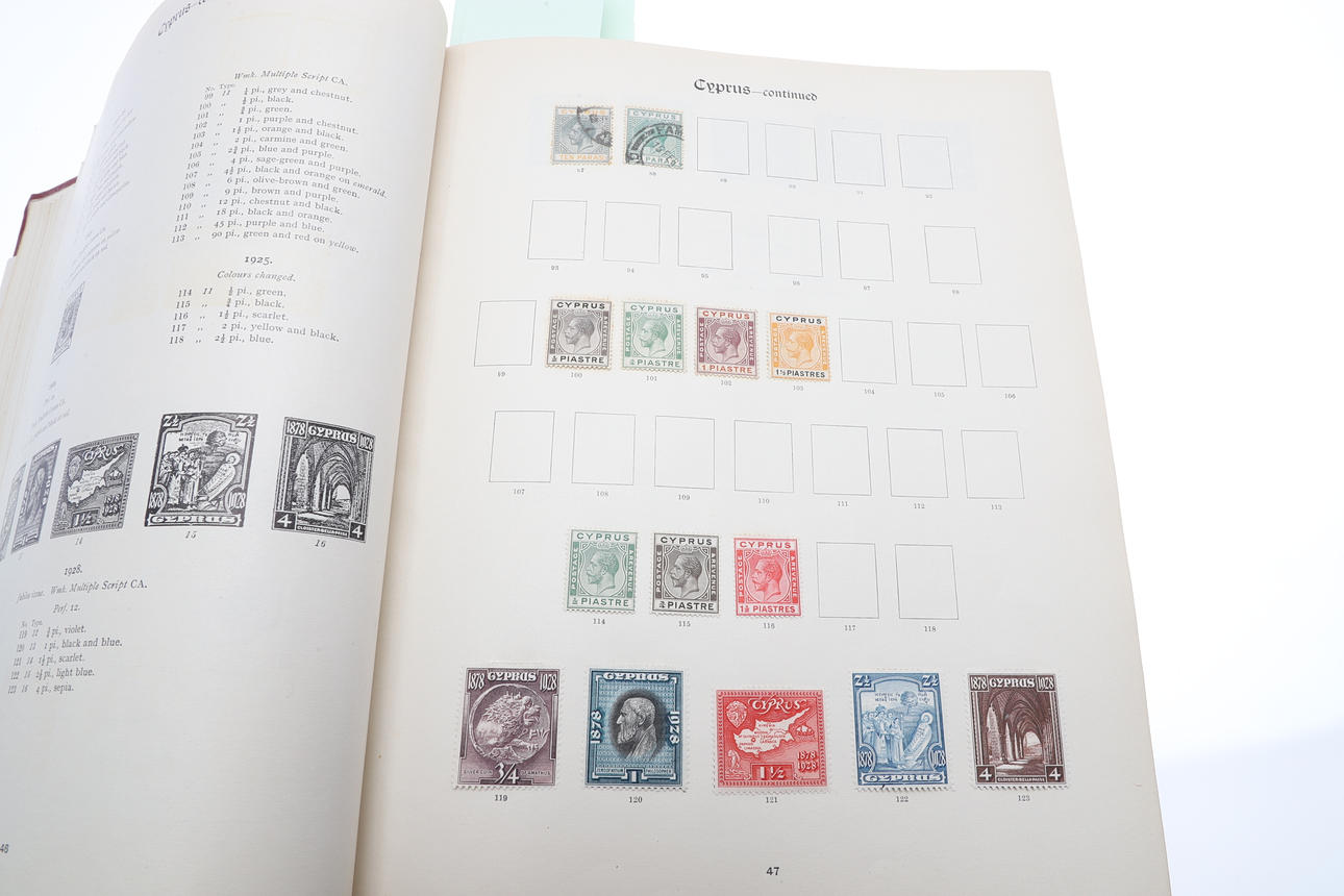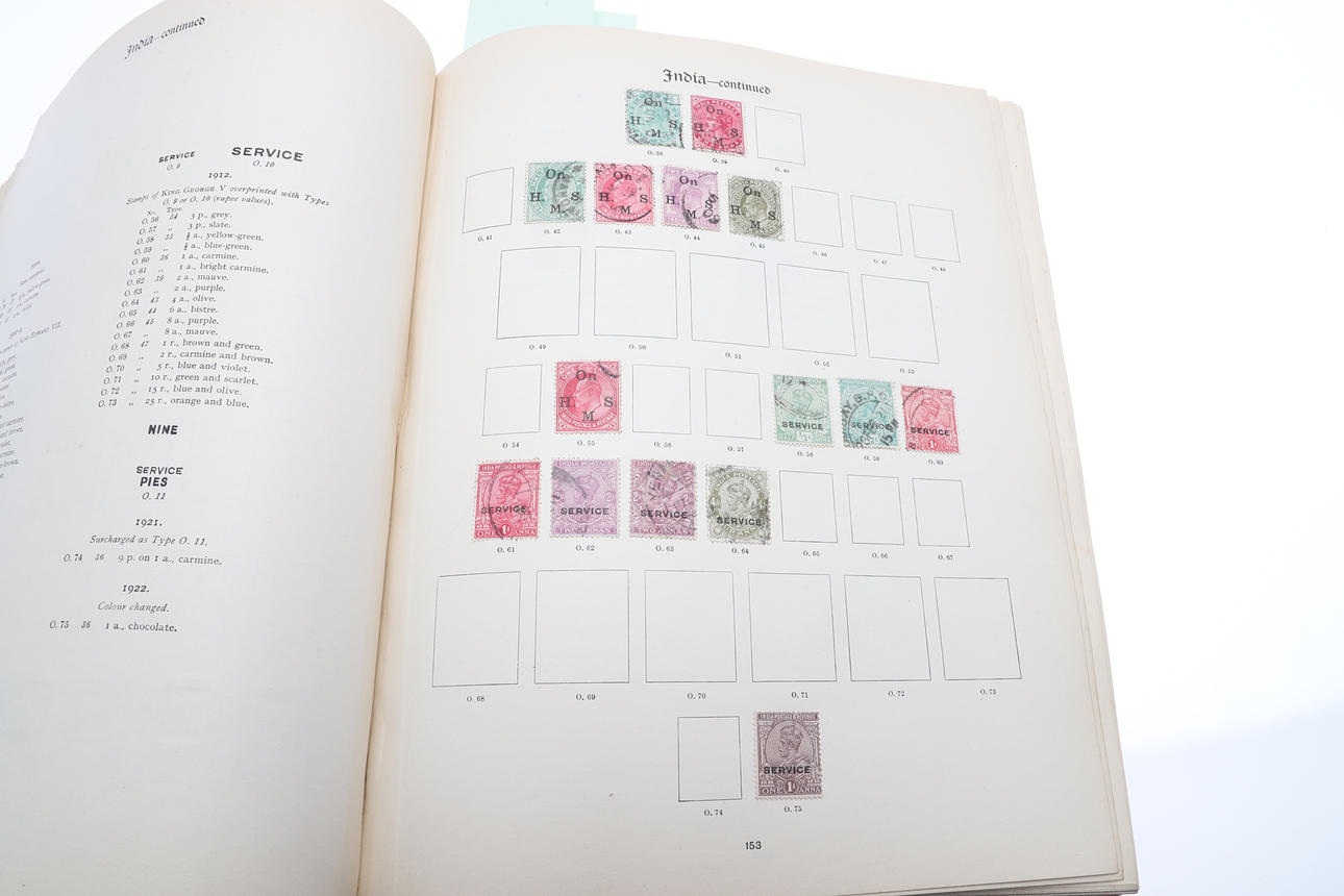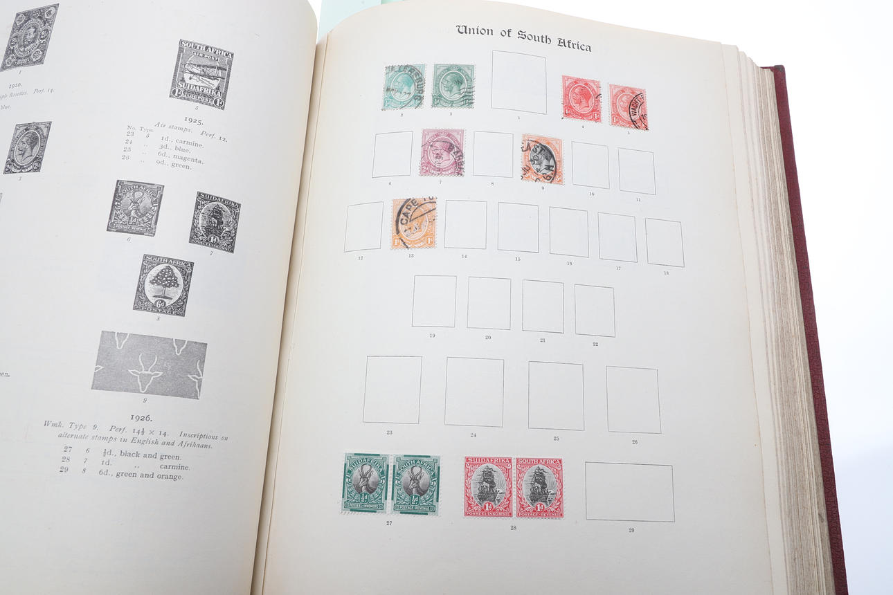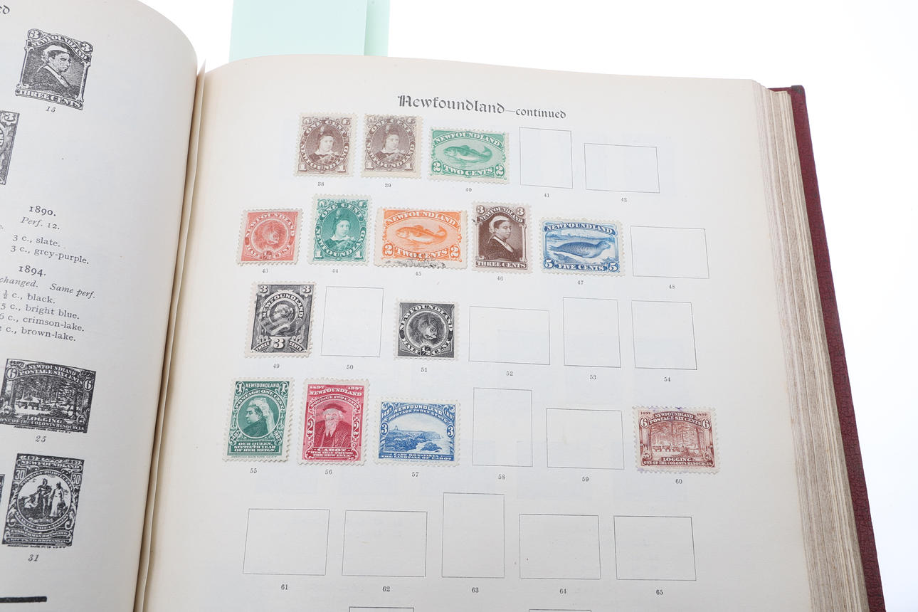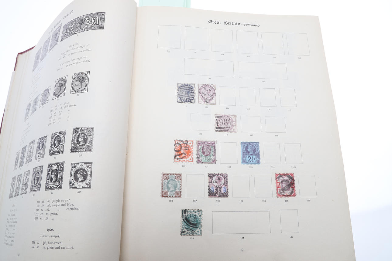 A large partially filled album with Great Britain and Commonwealth stamps, including 2d blue and other Victorian and 20thc stamps (Seahorse stamps, Empire Exhibition 1925 etc), used and mint 19thc and 20thc stamps including Cyprus, Gibraltar, India, Malta, Ceylon, African Countries, Canada, Newfoundland, Australia, West Indies, and many more. Album 29cms by 25cms.
